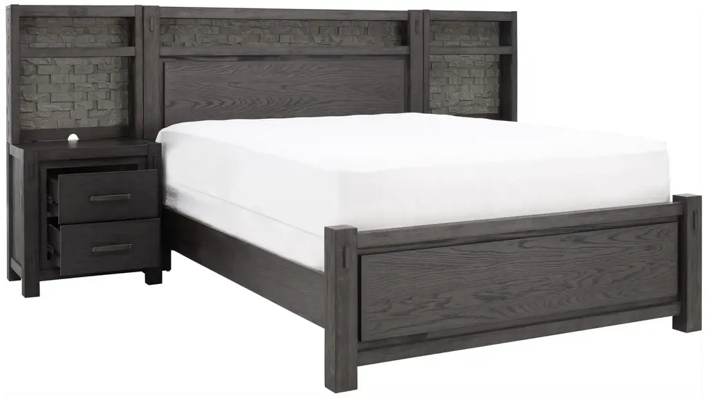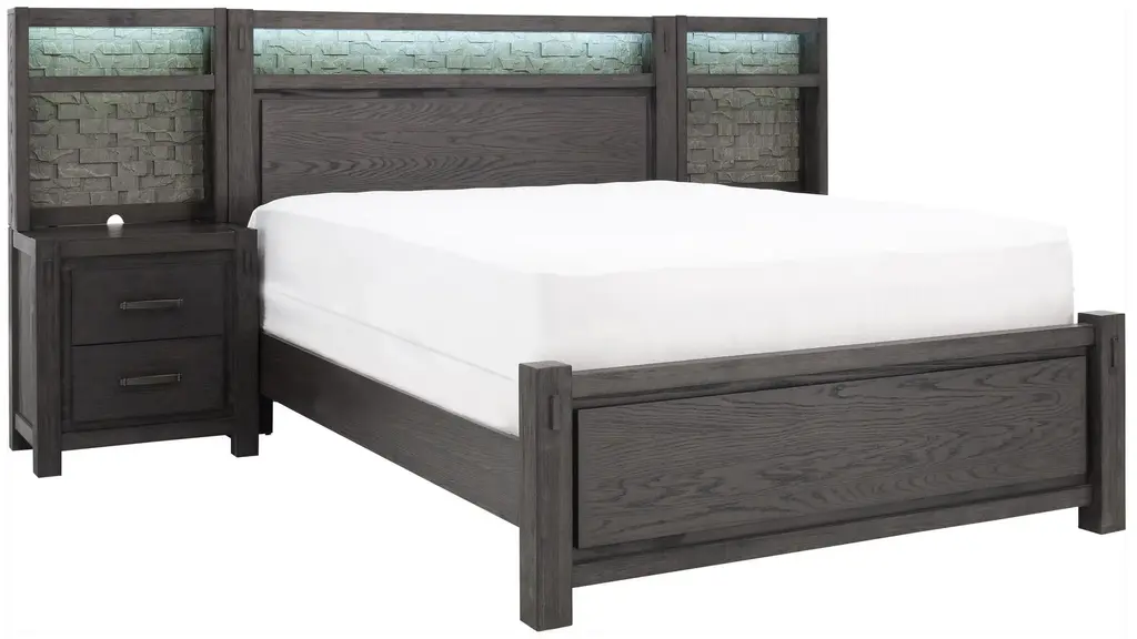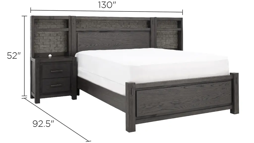 The Rockwell Wall Bed blends casual styling with functionality. The bed features a deep wood tone that will match any decor scheme. Plus, the two nightstand piers are loaded with cool features: a headboard light, plenty of storage and a faux rock backsplash. What more could you want from a bed that Rockwell doesn't offer?!