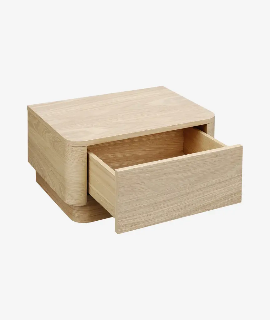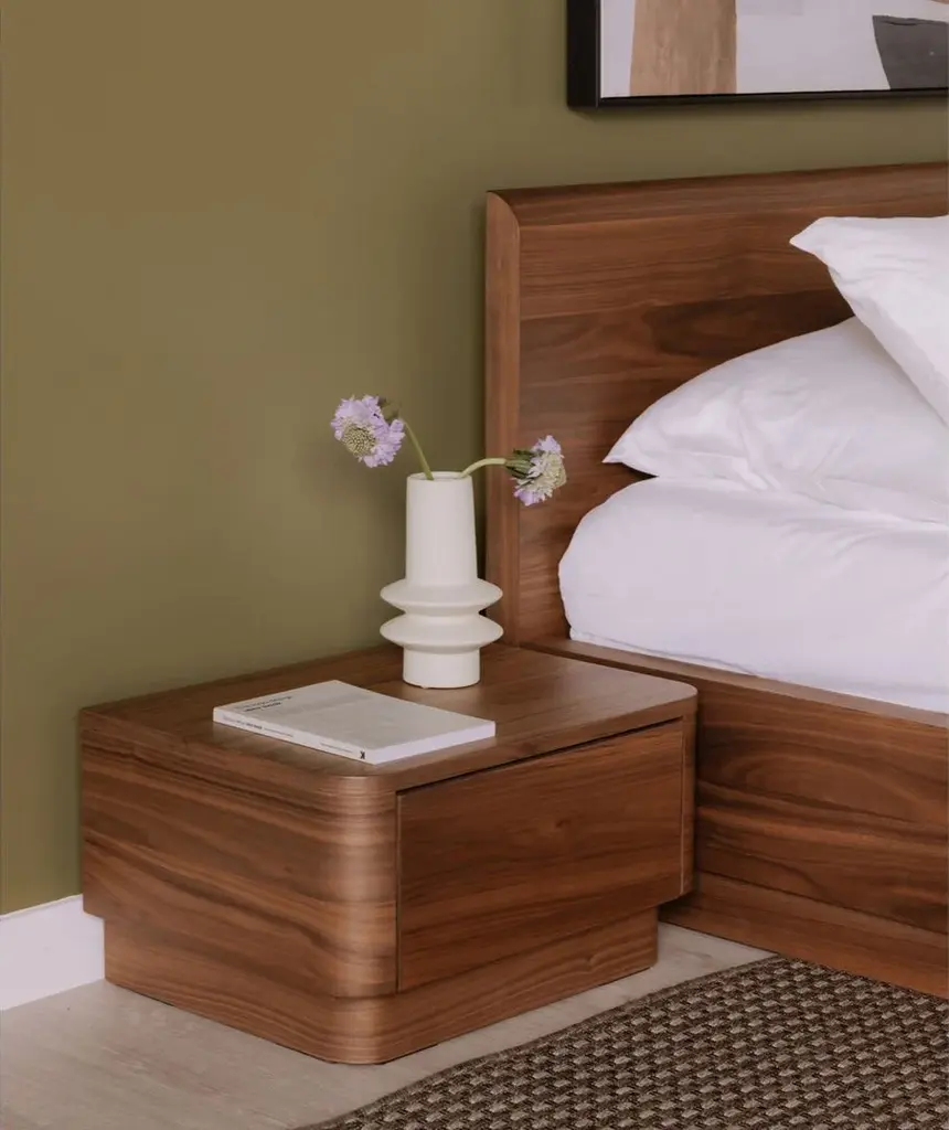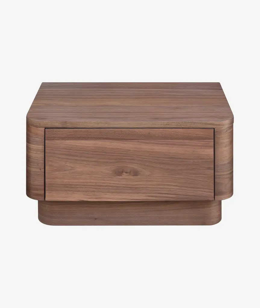 A soft, natural look for your bedroom. The Round Off collection is a showcase of natural walnut, with the beautiful dark tones of the grain matched to a simple, comforting design. This nightstand features a low build and soft corners with a spacious drawer that glides out seamlessly. perfect for all your bedside knickknacks. As part of the Round Off bedroom collection, pair with the dresser and bed for the complete look. Natural beauty and character come together to promote mellow relaxation in the most personal room of your home.