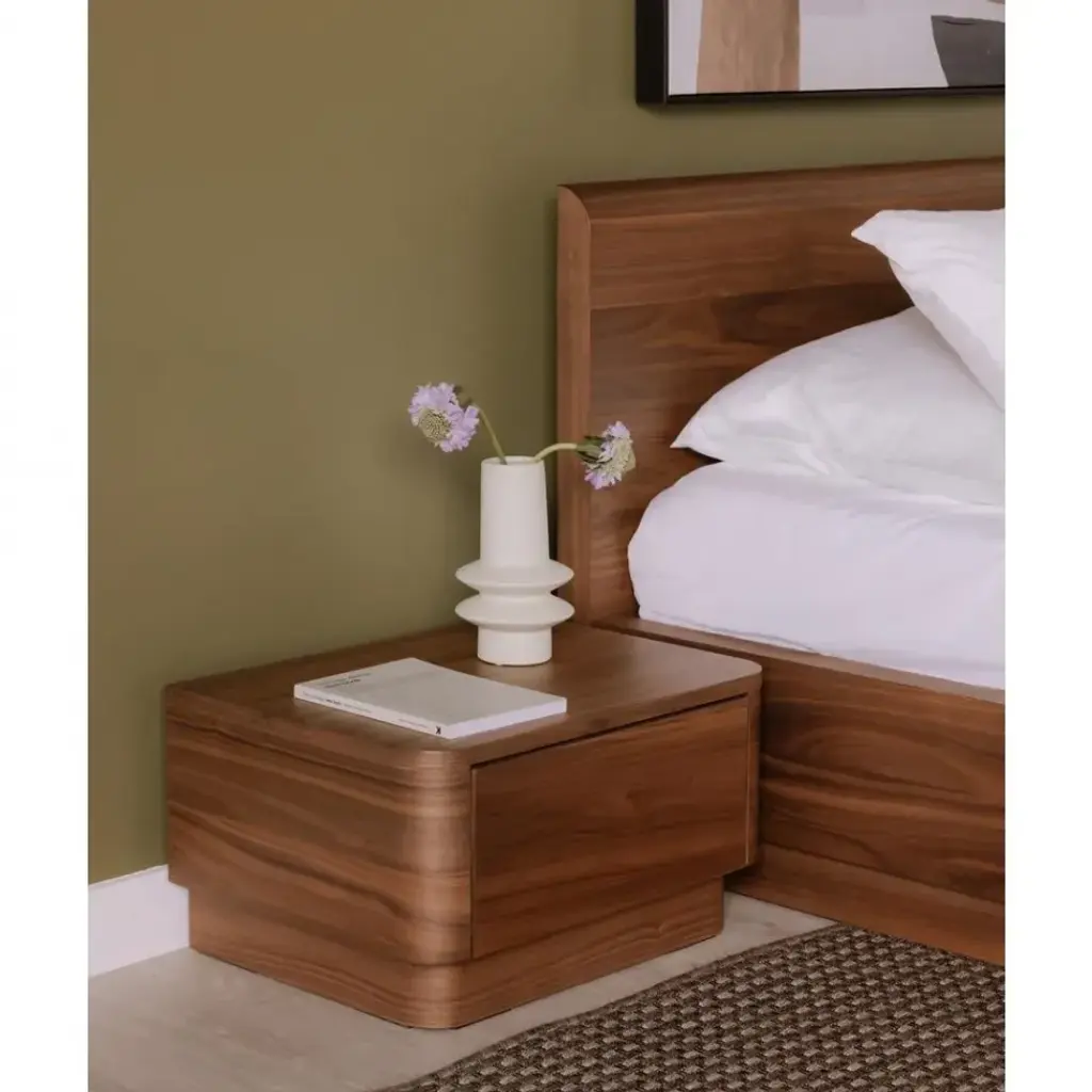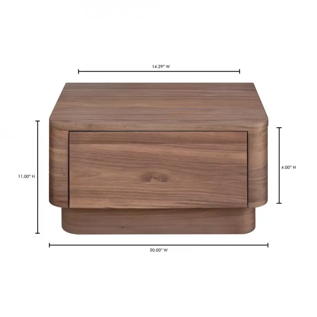 A soft, natural look for your bedroom. The Round Off collection is a showcase of natural walnut, with the beautiful dark tones of the grain matched to a simple, comforting design. This nightstand features a low build and soft corners with a spacious drawer that glides out seamlessly. perfect for all your bedside knickknacks. As part of the Round Off bedroom collection, pair with the dresser and bed for the complete look. Natural beauty and character come together to promote mellow relaxation in the most personal room of your home.