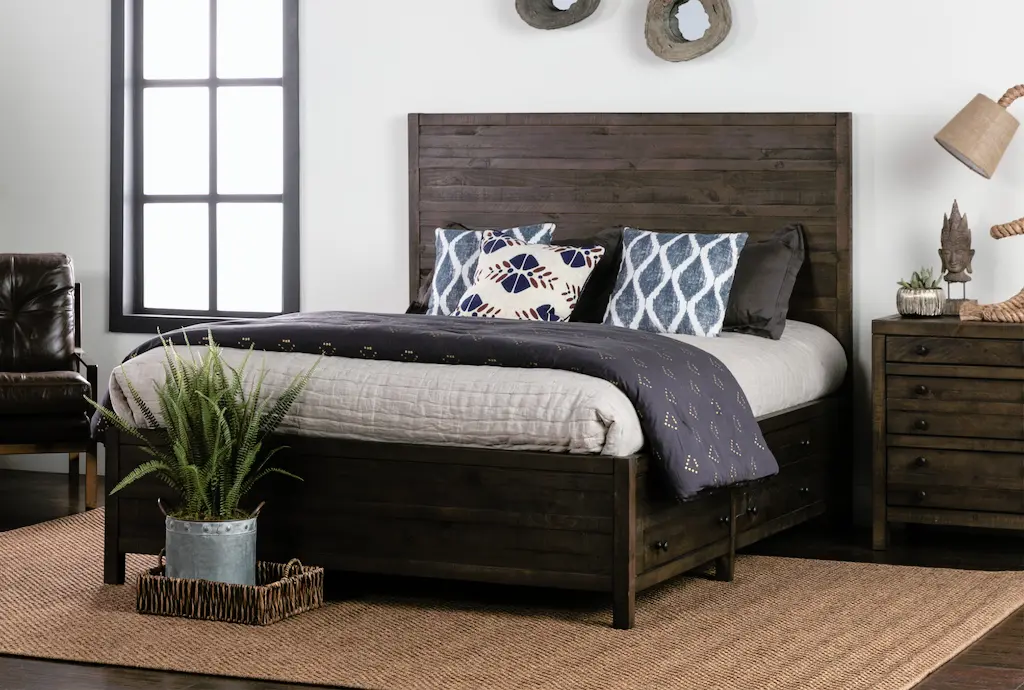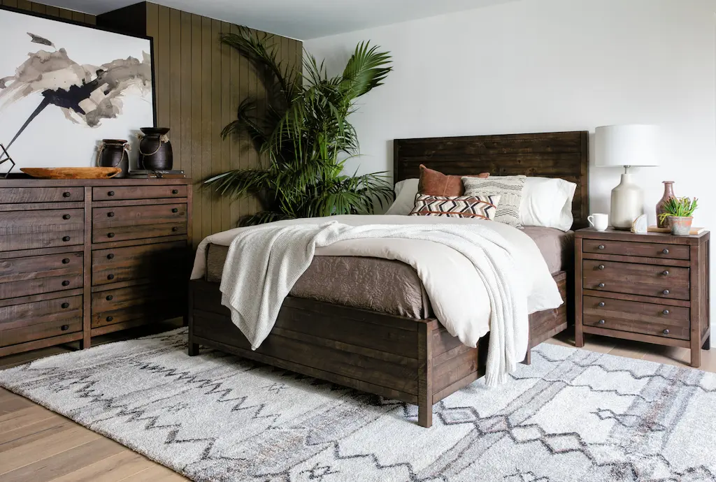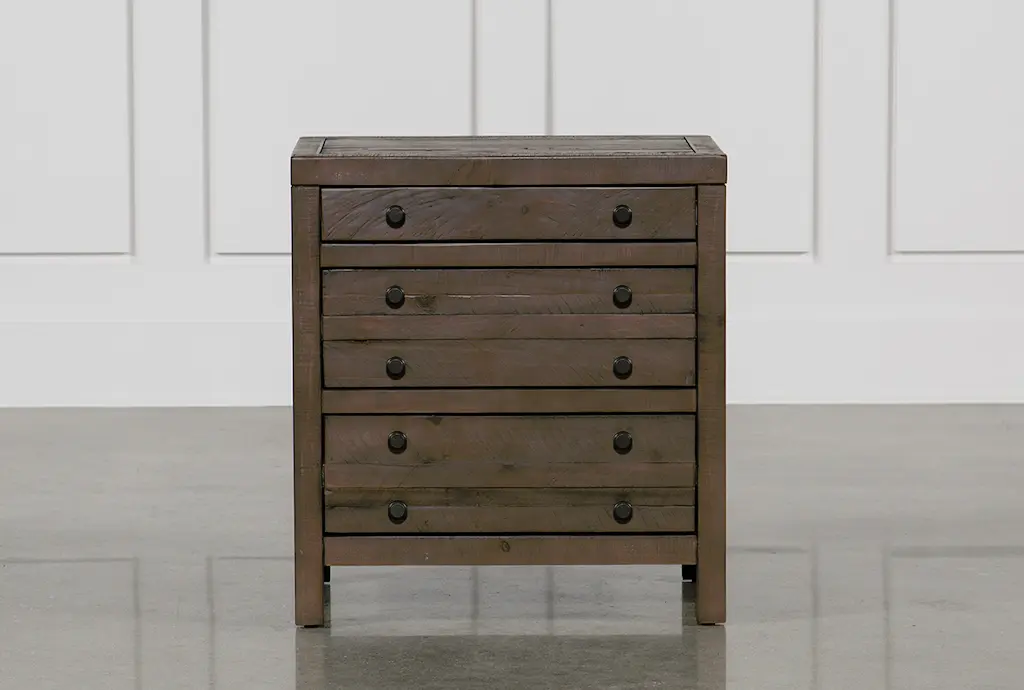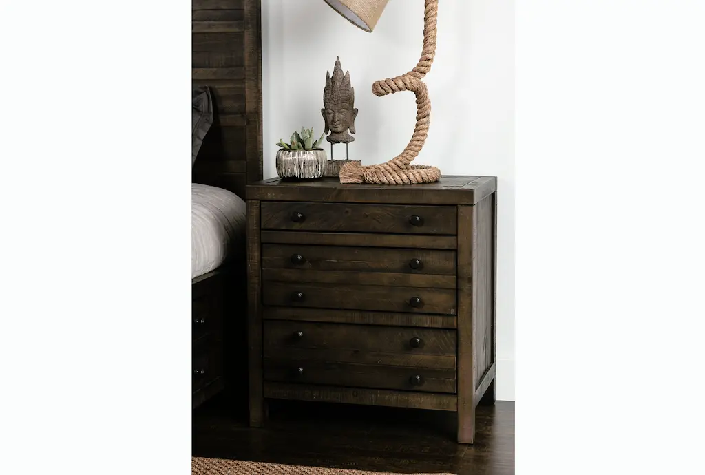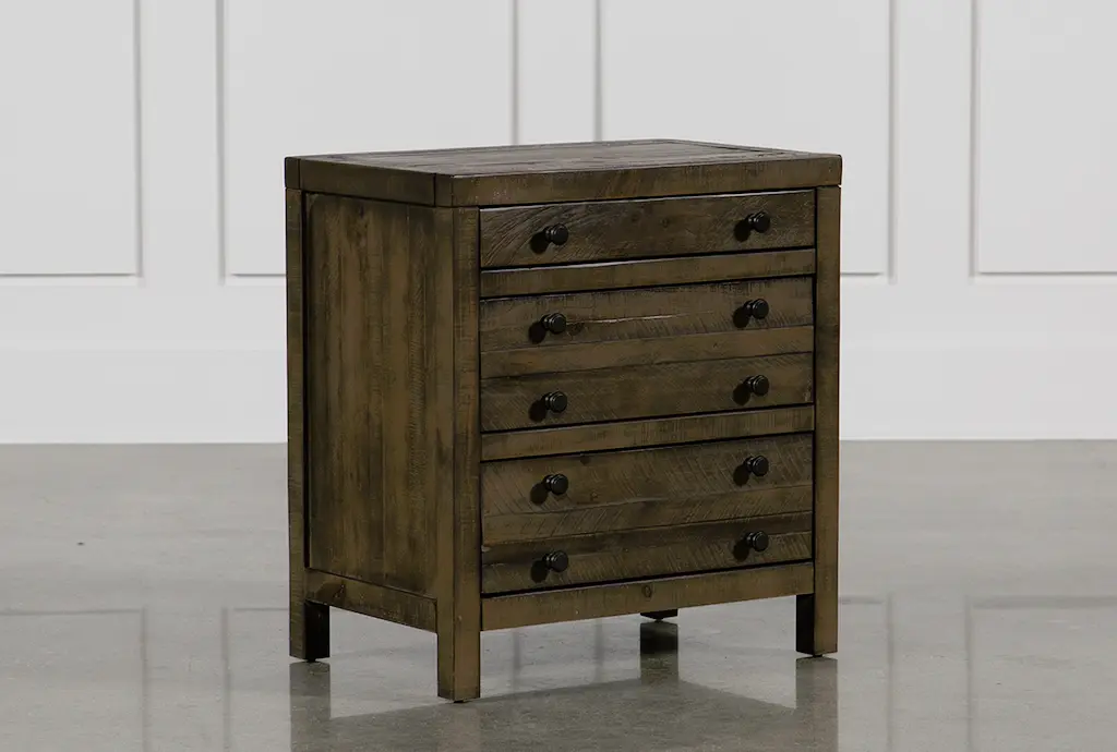 Vintage printmaker's cabinets are the inspiration behind our handsome three-drawer Rowan nightstand. Rough-hewn solid pine construction, charming planked detail and rustic bronze hardware instill heirloom character. Uniquely designed drawers - like the kind used for organizing maps, plans and blueprints - have been reimagined for bedroom use.