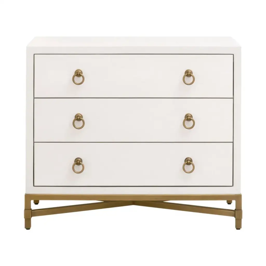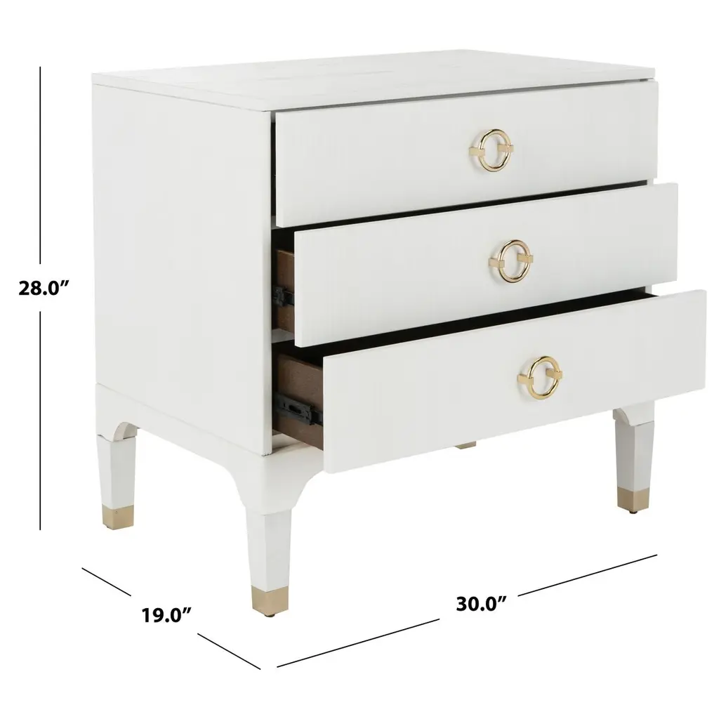 Elegant and refined, this three-drawer nightstand features capped feet and coordinating hardware, offering a timeless elegance that complements any decor. Its design is versatile, making it a perfect addition to any bedroom setting.