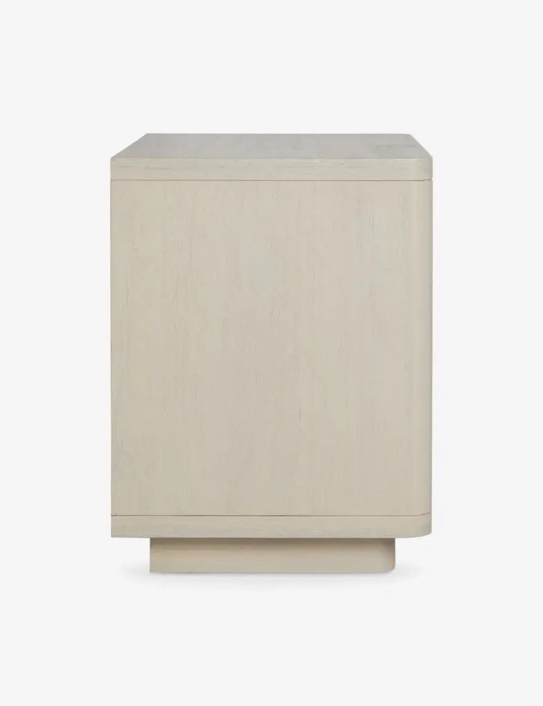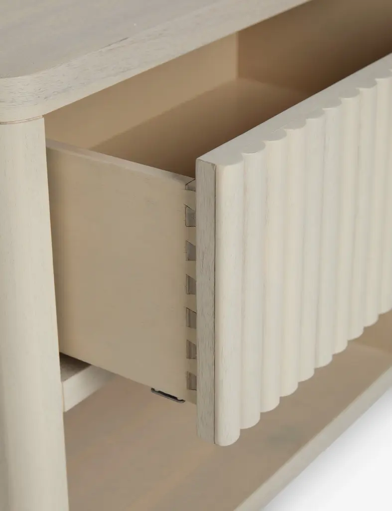 With its fluted front and light wood finish, the Rutherford nightstand brings vintage inspiration to a modern design. Its rounded lines, single drawer, and open shelf offer plentiful storage with a soft yet grounding presence bedside. We love this acacia wood night table for a clean, tonal look with minimalist appeal.