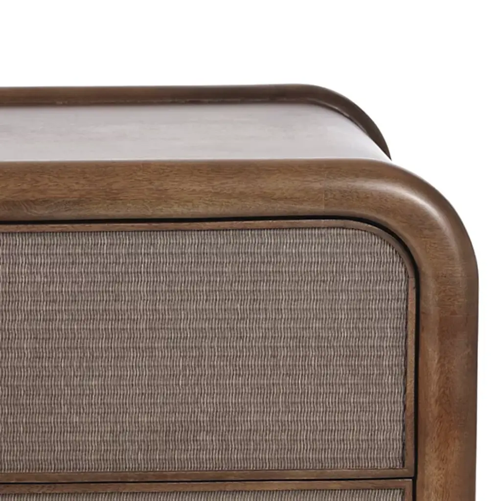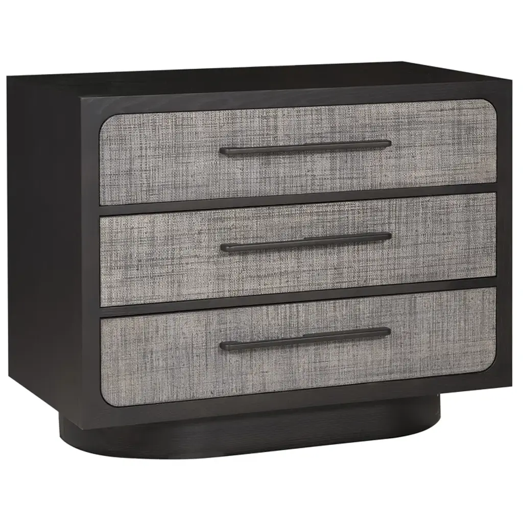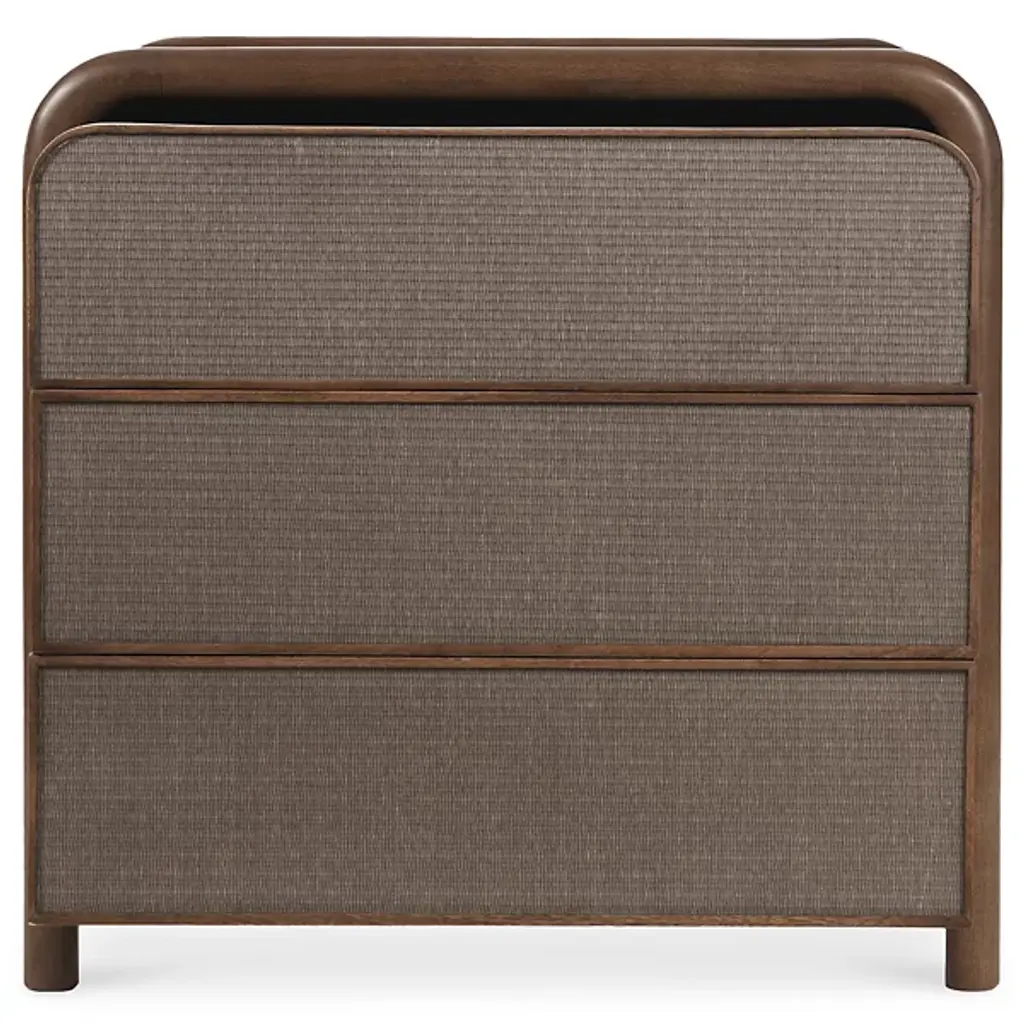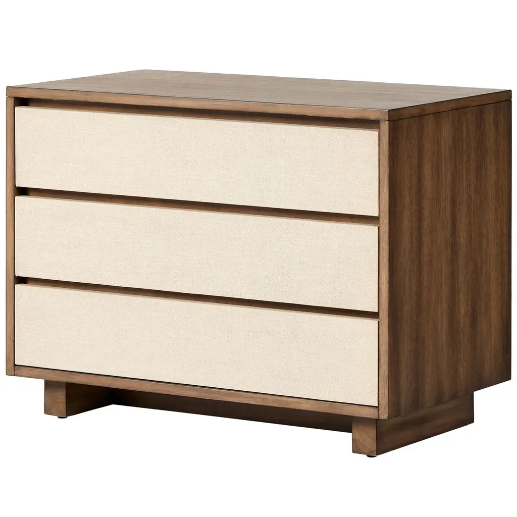 The Rye 3 Drawer Nightstand from Moe's Home Collection reinterprets traditional upholstery with its innovative use of textured, tonal woven rush fronts. This design element complements the solid mango wood frame, which is sustainably sourced from trees no longer bearing fruit and uses natural variations in the material to enhance its unique character. Known as Tatami-omote in Japan, the natural rice straw used offers durability and effective temperature regulation. With a blend of contemporary and rustic modern styles and a nod to Japanese minimalism, this nightstand adds vintage functionality and style to any space.