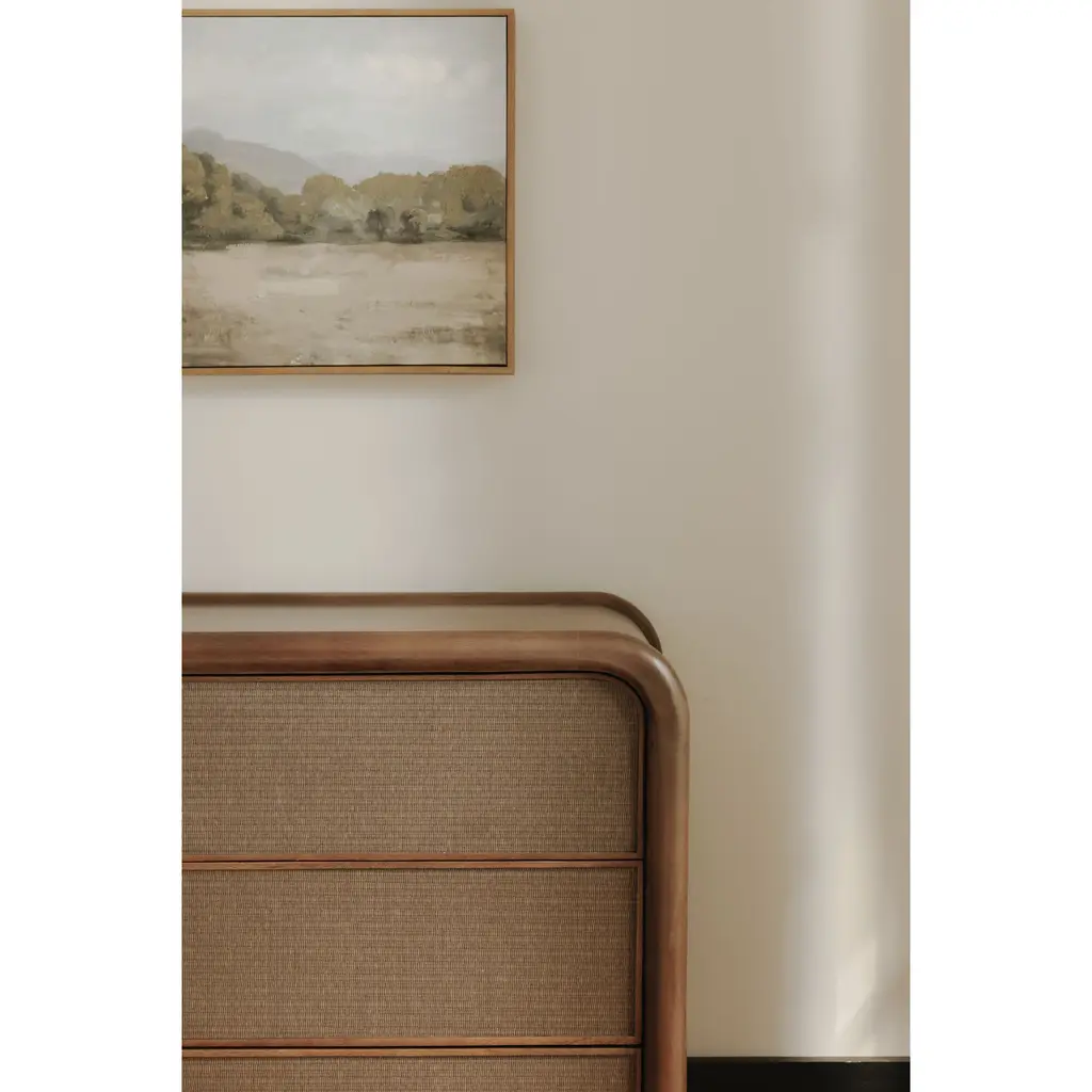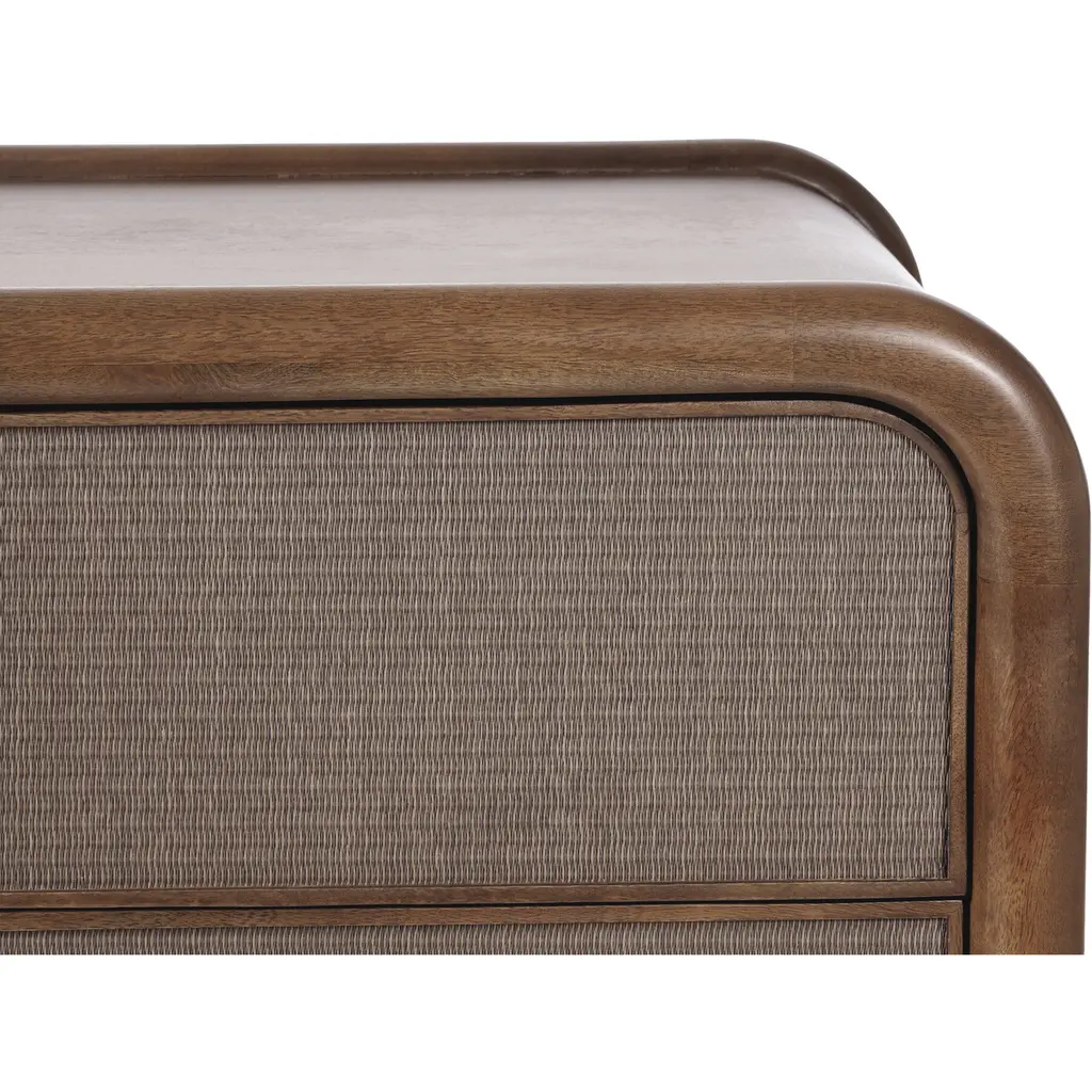 An inventive translation of piping detailing on traditional upholstery, the tonal woven soft rush front adds texture while complementing the solid mango wood construction of the Rye collection. More commonly recognized as Tatami-omote, this tightly woven multilayered natural rice straw is a centuries-old natural material known for its durability and temperature absorption originating in Japan.