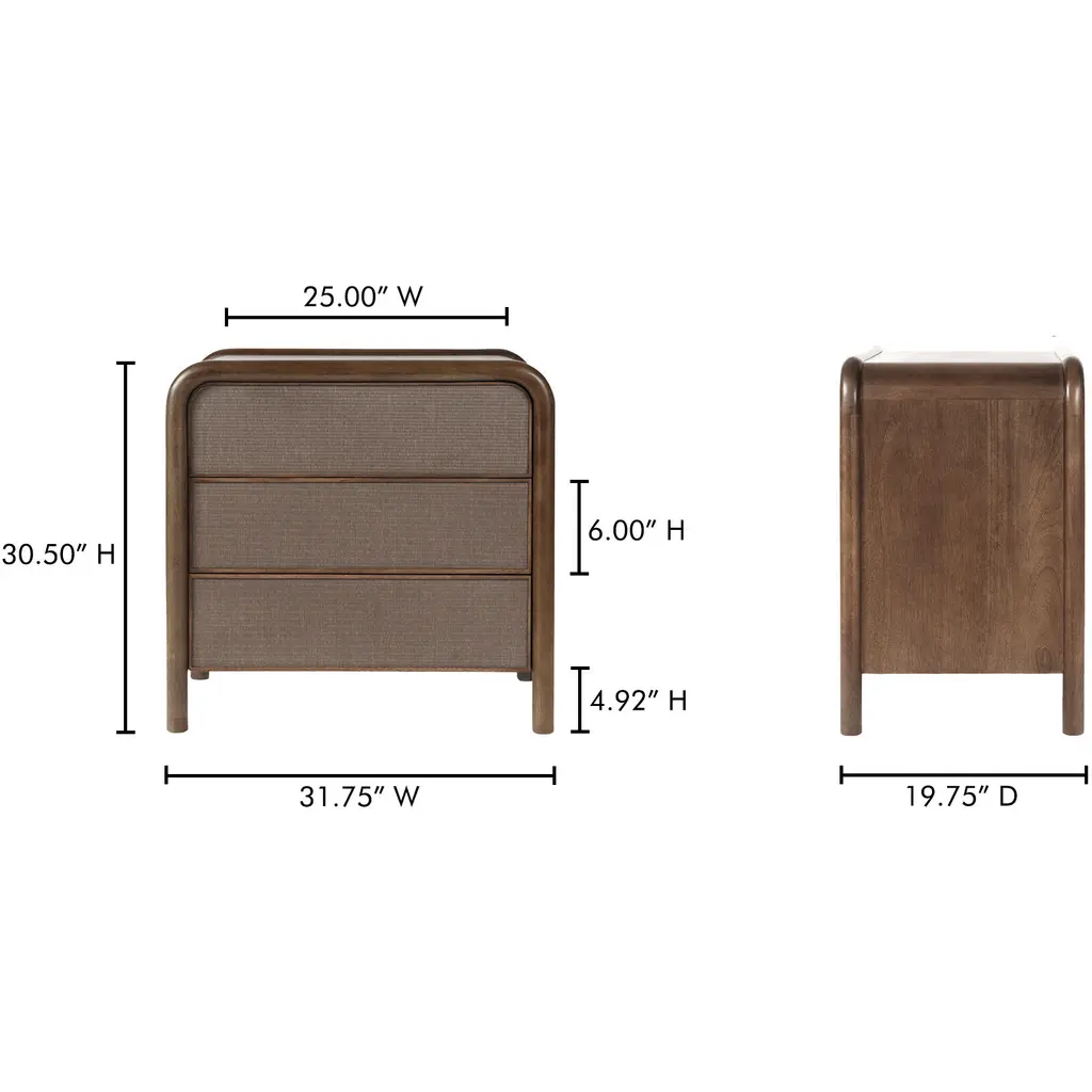 Rye 31.75 X 30.5 Inch Brown Nightstand, 3 Drawer