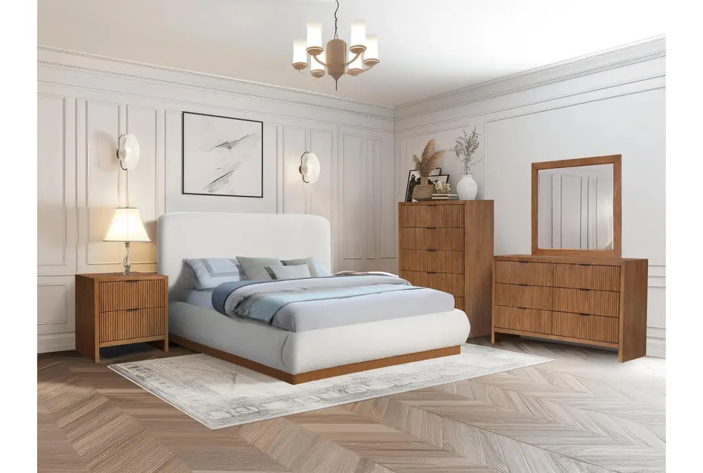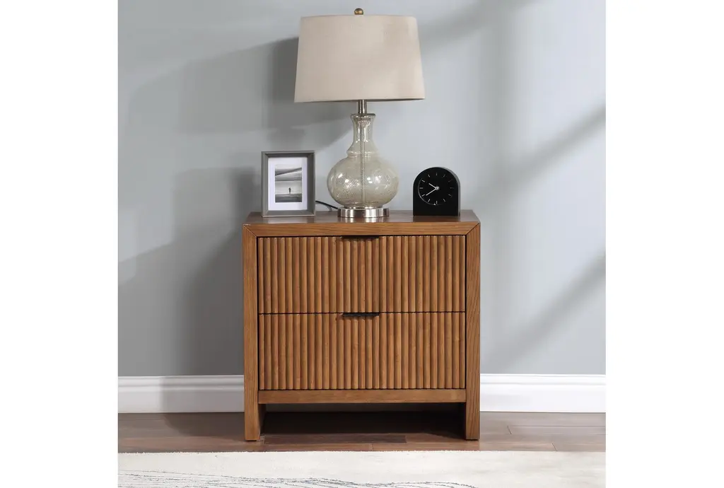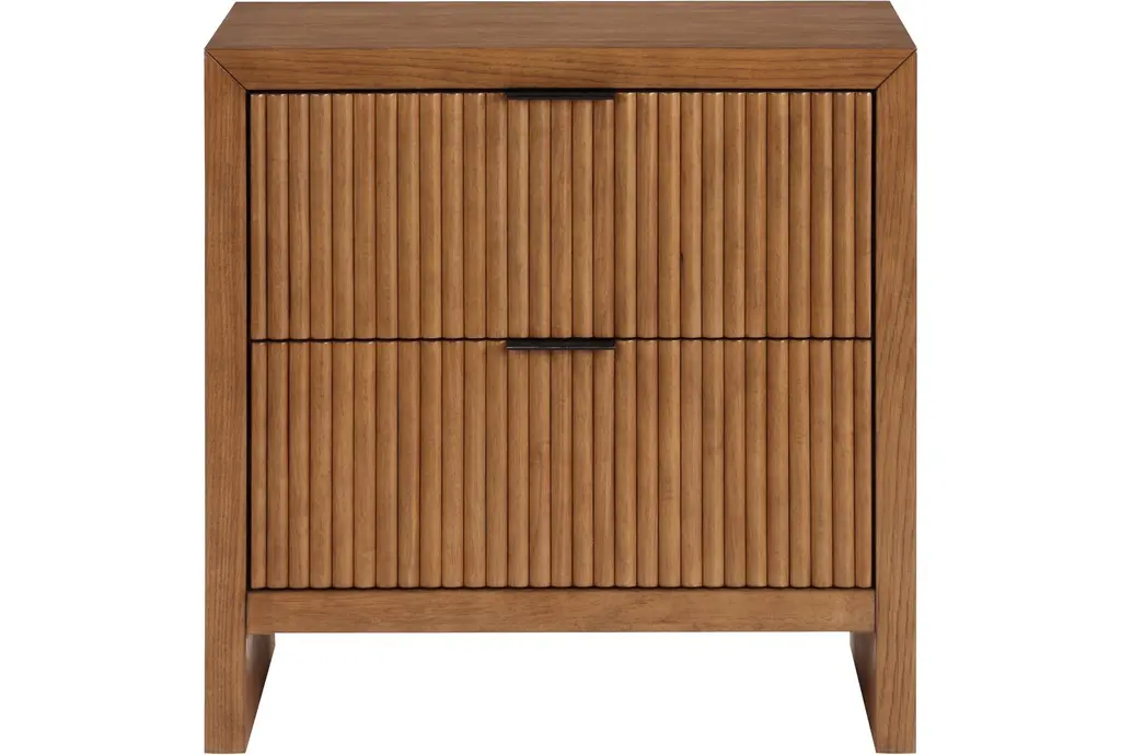 The Sablemoor Cherry 2-Drawer Nightstand is a perfect blend of modern and contemporary styles, featuring a rich walnut finish that adds a touch of elegance to any bedroom. Crafted from high-quality rubberwood and oak veneer, this nightstand is both durable and stylish. The fluted drawer fronts and matte black metal handles enhance its art deco design, making it a standout piece in your home.