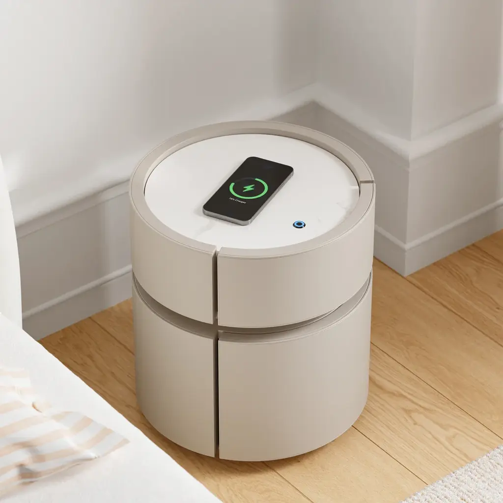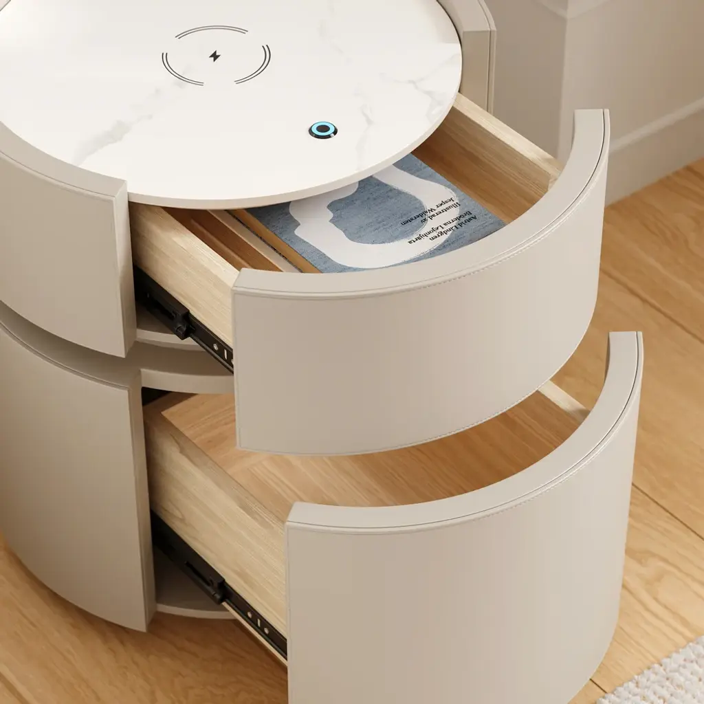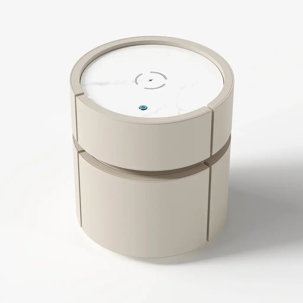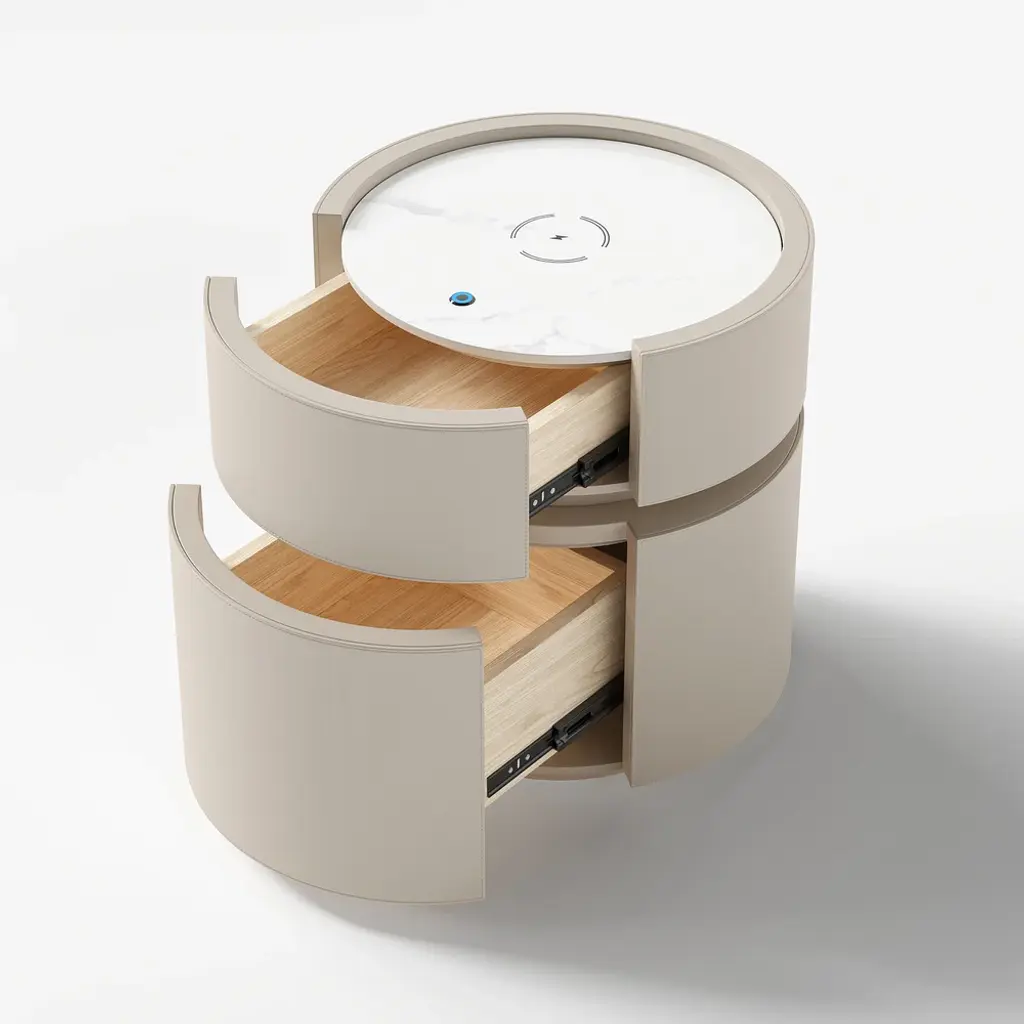 Elevate your bedroom with this sophisticated 2-drawer nightstand, crafted from premium saddle leather and topped with durable sintered stone. This smart furniture piece includes LED lighting for subtle ambiance and features wireless charging capabilities, seamlessly blending luxury with modern convenience. Ideal for keeping your devices charged and your essentials organized, this nightstand is a perfect blend of form and