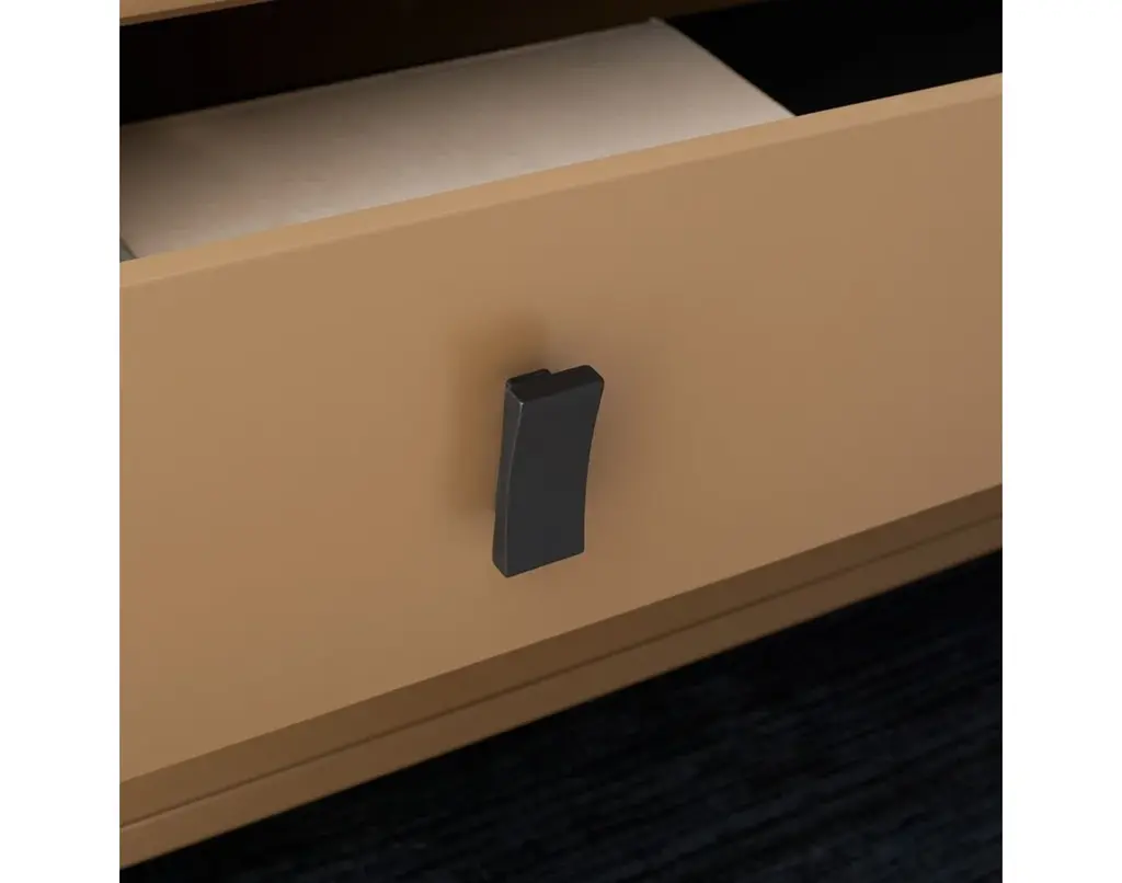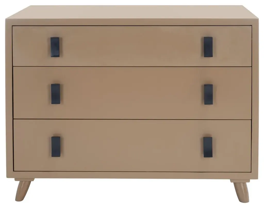 This retro-chic Blaize Chest offers a contemporary spin on vintage style. Ideal as a nightstand or as a chest in the living room, its neutral taupe finish complements any decor, and its black metal hardware adds a touch of industrial luxe to its three spacious drawers.