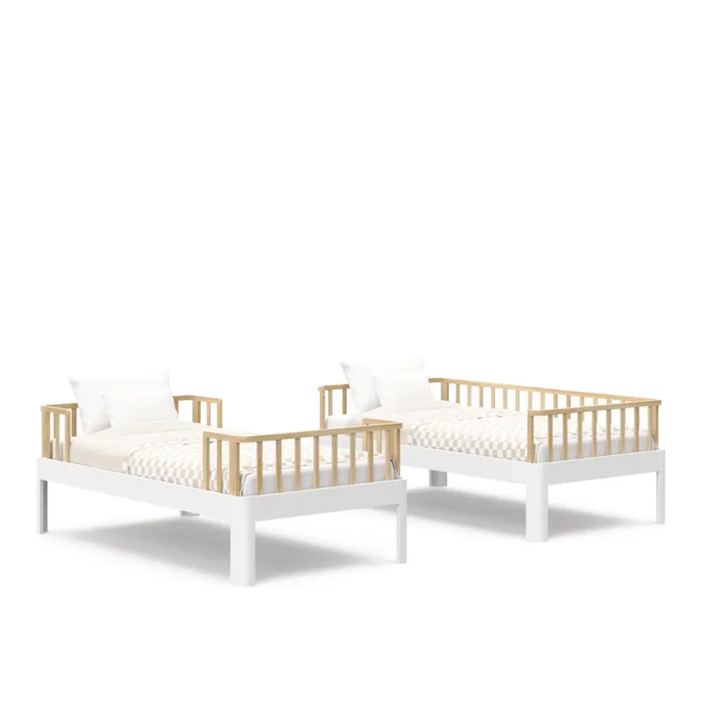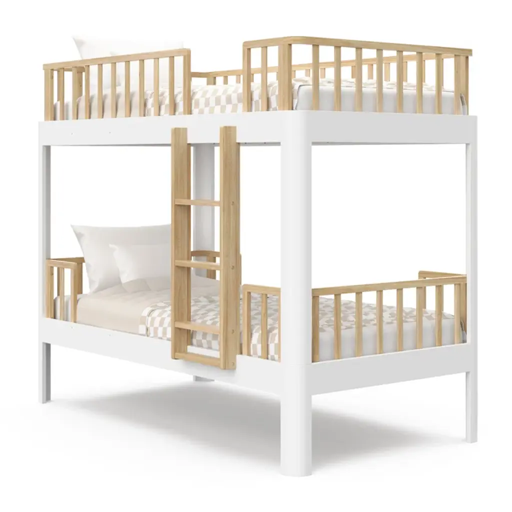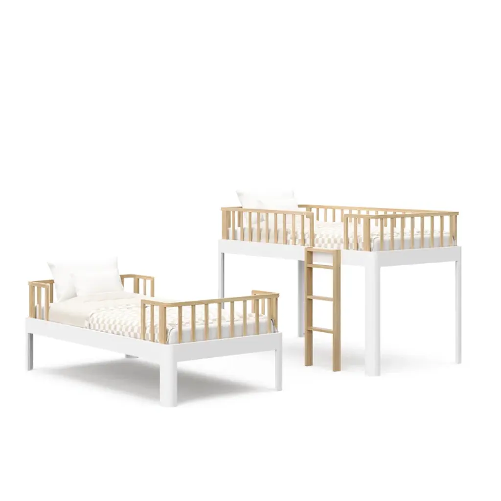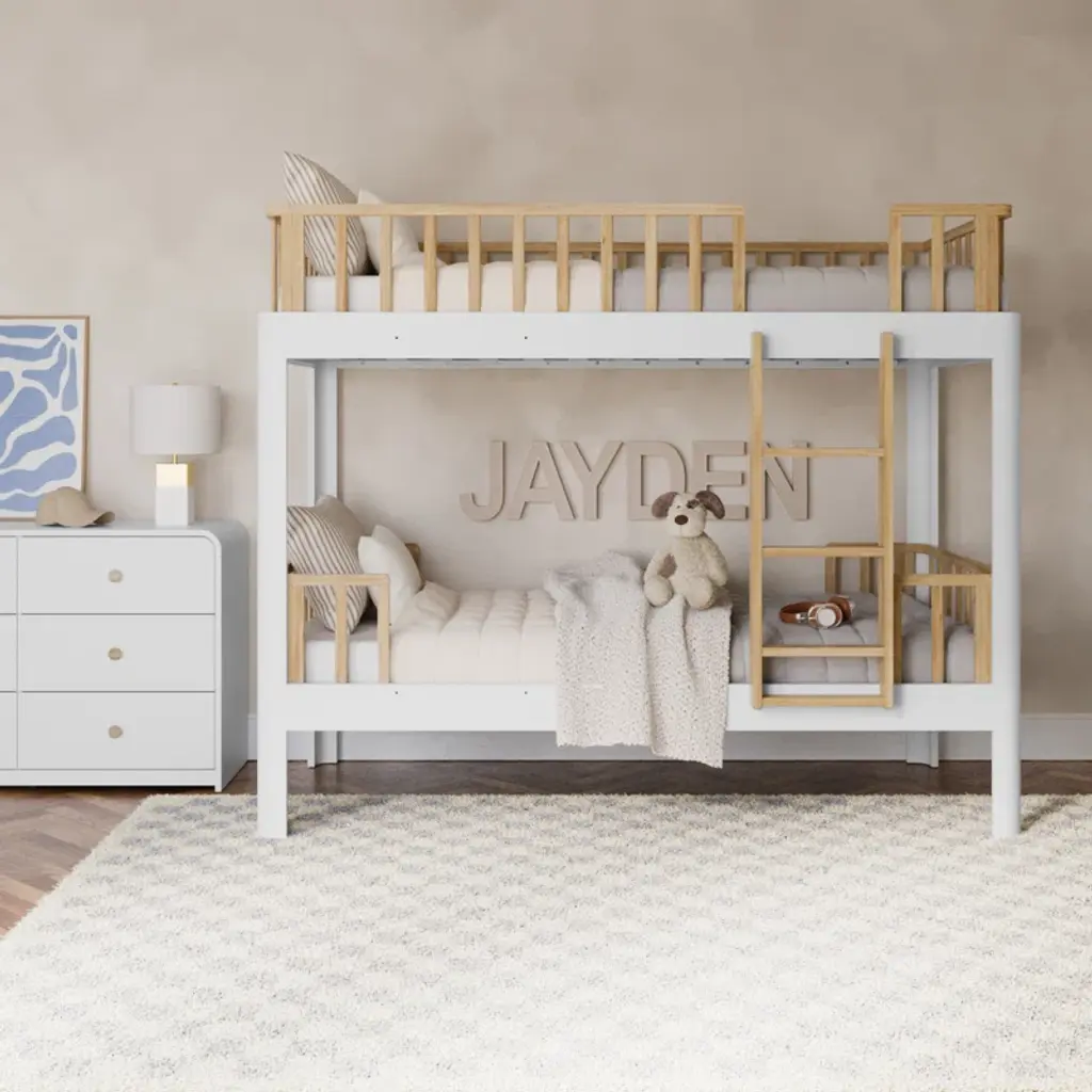 Our most premium bunk bed ever: introducing the incredibly capable (and stylish) Storkcraft Next Santos Twin-Over-Twin 5-in-1 Convertible Bunk Bed, by Storkcraft. From Storkcraft—makers of quality nursery furniture since 1945—the Santos is part of the Storkcraft Next line of kids bedroom furniture. The Santos can be set up in 5 different ways: (1) a twin-over-twin bunk bed; (2) two individual twin beds; (3) a twin loft bed and twin bed; (4) a toddler bed and twin bed; (5) a daybed and twin bed. For your complete bedroom set, complete the Storkcraft Next Santos Collection with the matching Storkcraft Santos 3-in-1 Convertible Crib, Storkcraft Next 6 Drawer Dresser, and Storkcraft Next Santos 2 Drawer Nightstand. The Storkcraft Next Santos Twin-over-Twin 5-in-1 Convertible Bunk Bed is GREENGUARD Gold Certified – certified products are screened for more than 10,000 chemicals and VOCs known to pollute indoor air. The Santos Bunk Bed is crafted with rubberwood solids and engineered wood, and its applied finish has been tested to meet or exceed the applicable ASTM and CPSIA safety standards. Exclusively from Storkcraft® — makers of quality nursery and kids bedroom furniture since 1945, and North America’s longest-standing name in baby cribs. Storkcraft® is the proud recipient of the Parent Tested Parent Approved (PTPA) Seal of Approval for nursery and children’s bedroom furniture. Assembly required. Mattresses not included.