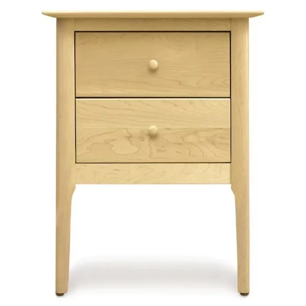Exceptional function in a compact frame. The Copeland Furniture Sarah 2 Drawer Nightstand finds elegance in its simplicity, offering useful storage and understated style. The drawers make up the bulk of the body, resting on stout legs and giving the structure a box-like shape. Adjustable drawer glides enhance the piece’s utility, allowing for quick access to your frequently used items. While the nightstand has a reserved look, Solid Hardwood brings an unmistakable natural appeal to the exterior, with knots and burls accenting the body. A slight structure with incomparable convenience, the nightstand matches obvious function with subtle fashion and meets all the needs you could expect from a bedside table.