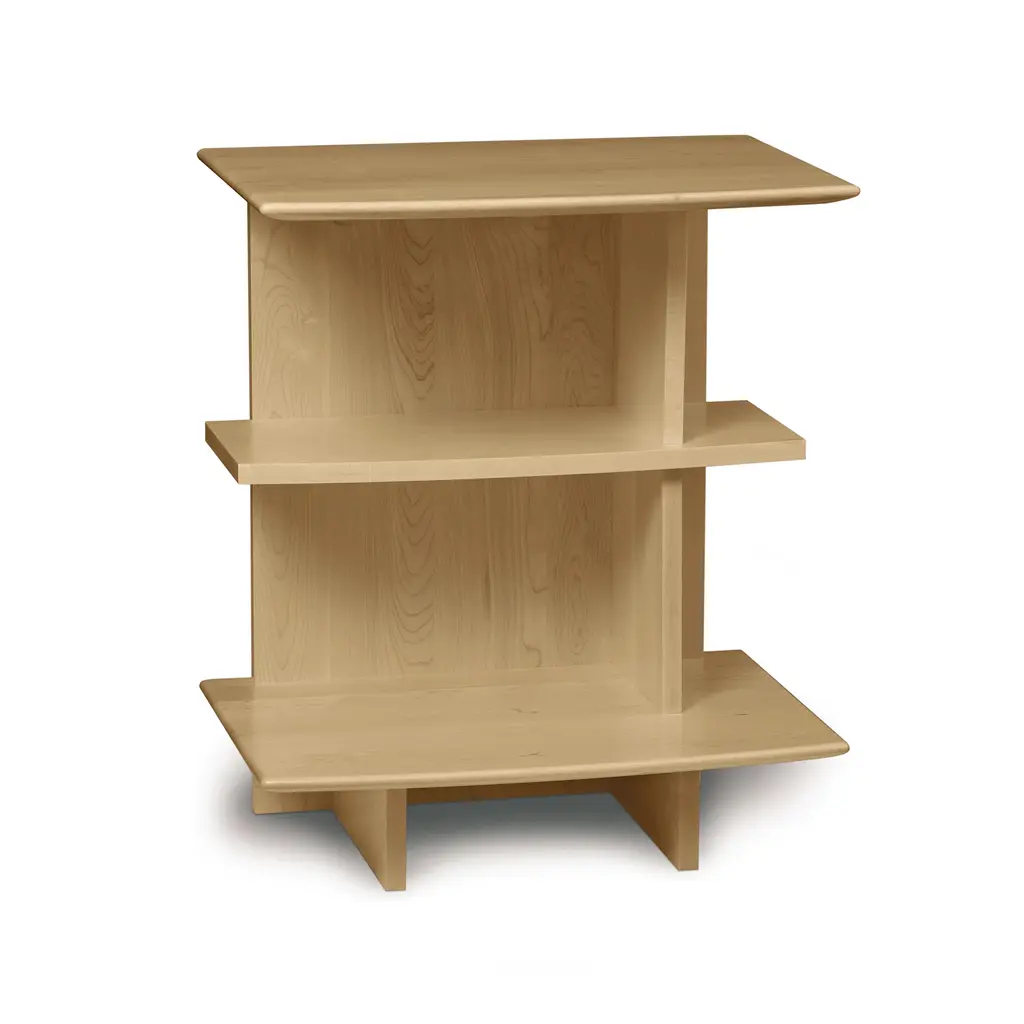 Copeland's Sarah solid wood 3 Shelf Open Nightstand is designed to accommodate under-bed storage with the matching Sarah Storage Bed. Open design features 3 shelves and is specifically designed to allow for opening of optional under bed storage drawers with the Sarah Storage Beds. Our Sarah Furniture Collection is handmade in Vermont using sustainably harvested woods.Base price represents nightstand in natural cherry Shown in natural solid cherry woodMatching furniture available in our Sarah Shaker Furniture CollectionNatural variations in solid wood and hand applied finishes make each piece unique. Slight grain and finish irregularities tell you that the furniture has been crafted from solid wood and are considered hallmarks of quality.