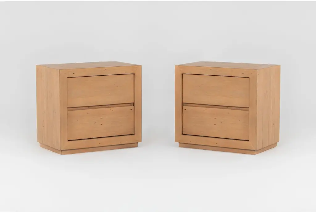 Satori Natural Wood 1-Drawer & 2-Drawer Nightstands With Usb Set Of 2