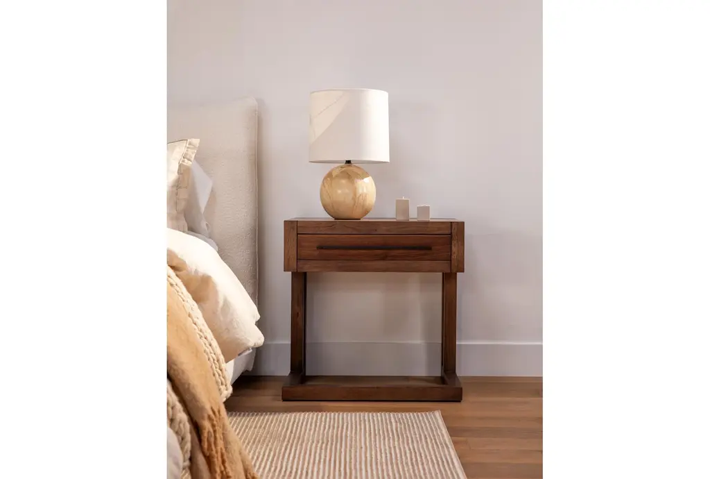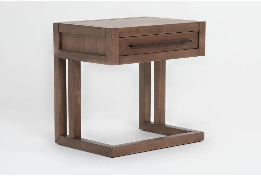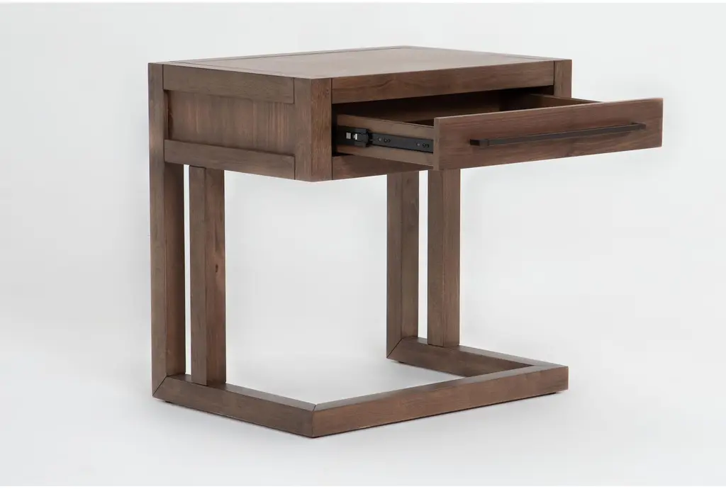 Sawyer Brown Walnut Wood 1-Drawer C Table With Usb