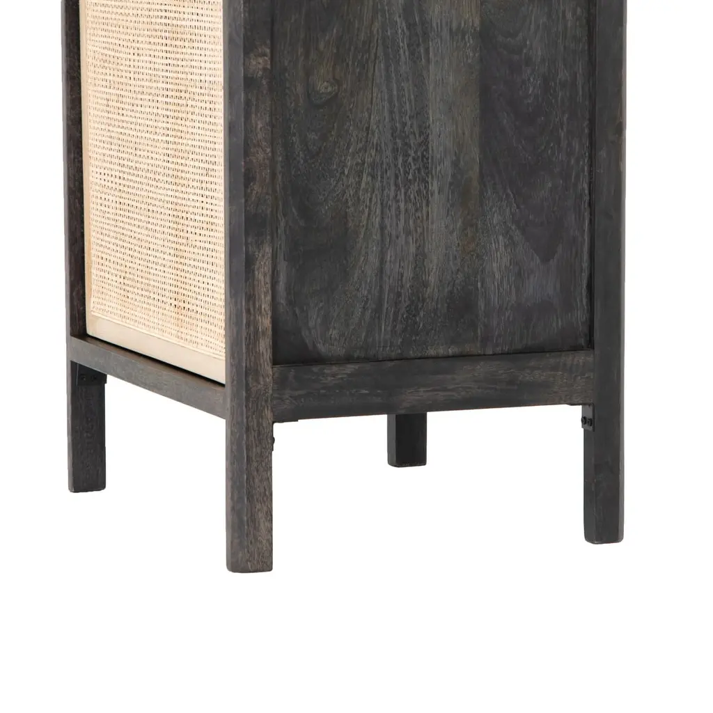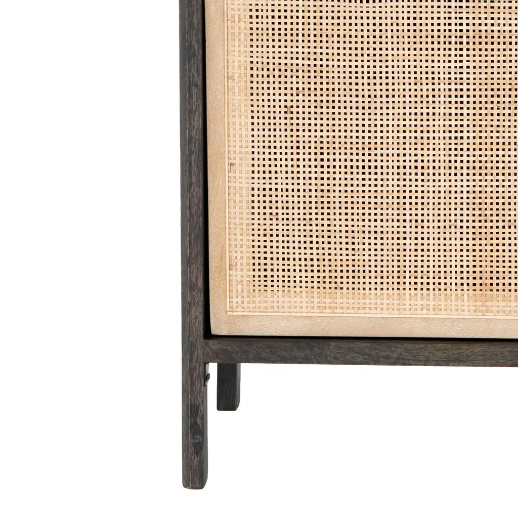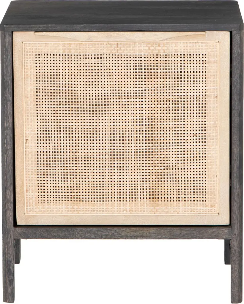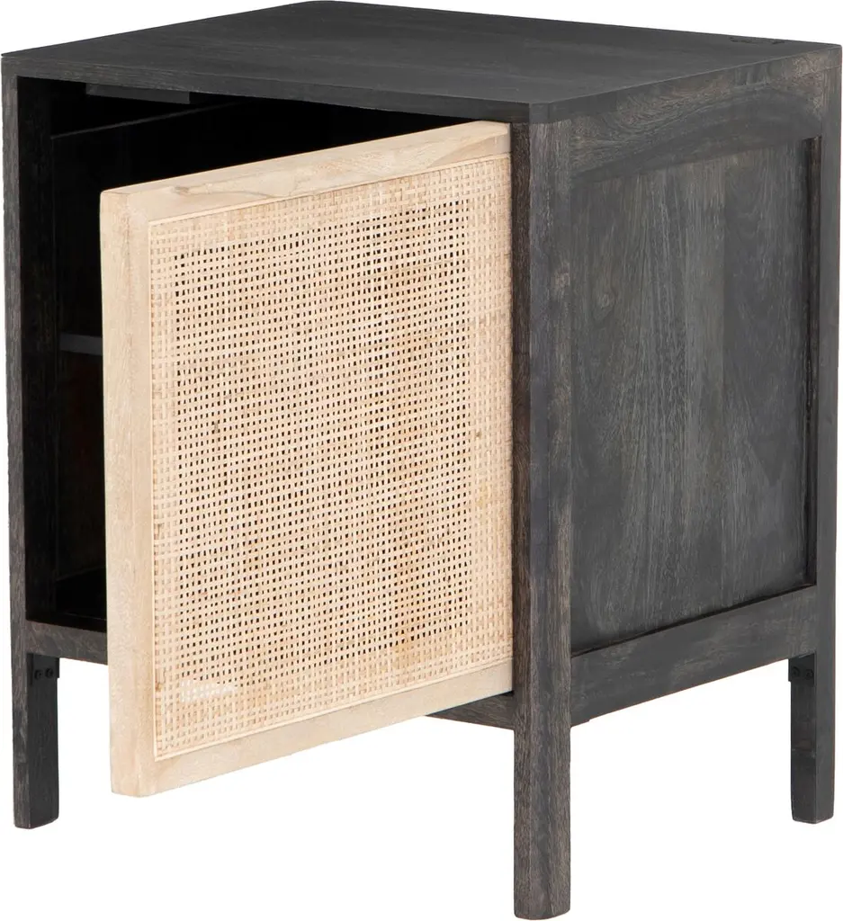 The woven-cane door provides a textural complement to this nightstand's durable mango-wood frame. The warm brown finish ensures timeless sophistication. Behind the door, which is hinged on the right, is a removable shelf.