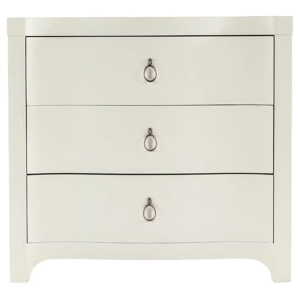 If you aspire to tranquil palettes and clean, crisp silhouettes, the Antigua Three-Drawer Nightstand will bring the peacefulness of the outdoors in with its shaped front. Crafted of Oak Veneers, the nightstand has 3 drawers with soft-close drawer guides, a USB charger with two ports and a cord clip on the back. Decorative ring pulls add a designer touch.