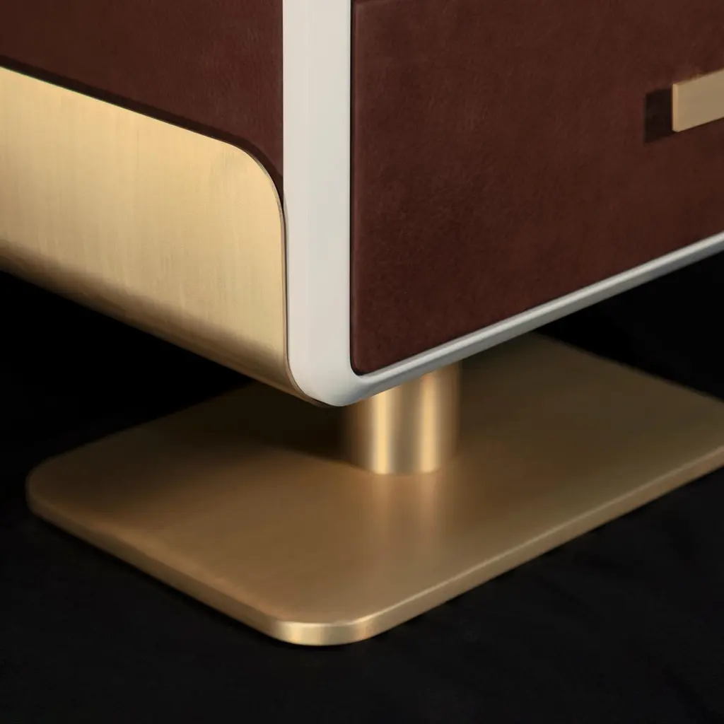 The capital city of Arizona, Phoenix, is located in the central region. Usually known for its year-round sun, desert beauty, and world-class resorts. Blending Portuguese Craftsmanship and a deluxe lifestyle and transforming sights into deluxe living protagonists, Porus Studio's designers conceived the Phoenix Nightstand. This modern bedside table features an aged brushed brass base that support two lacquered wood drawers with gloss varnish and genuine leather. Phoenix is the perfect finish for any deluxe bedroom.