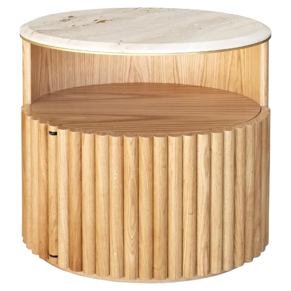 Set Of 2 21st Herbert Nightstand Oak Travertino Leather By Wood Tailors
