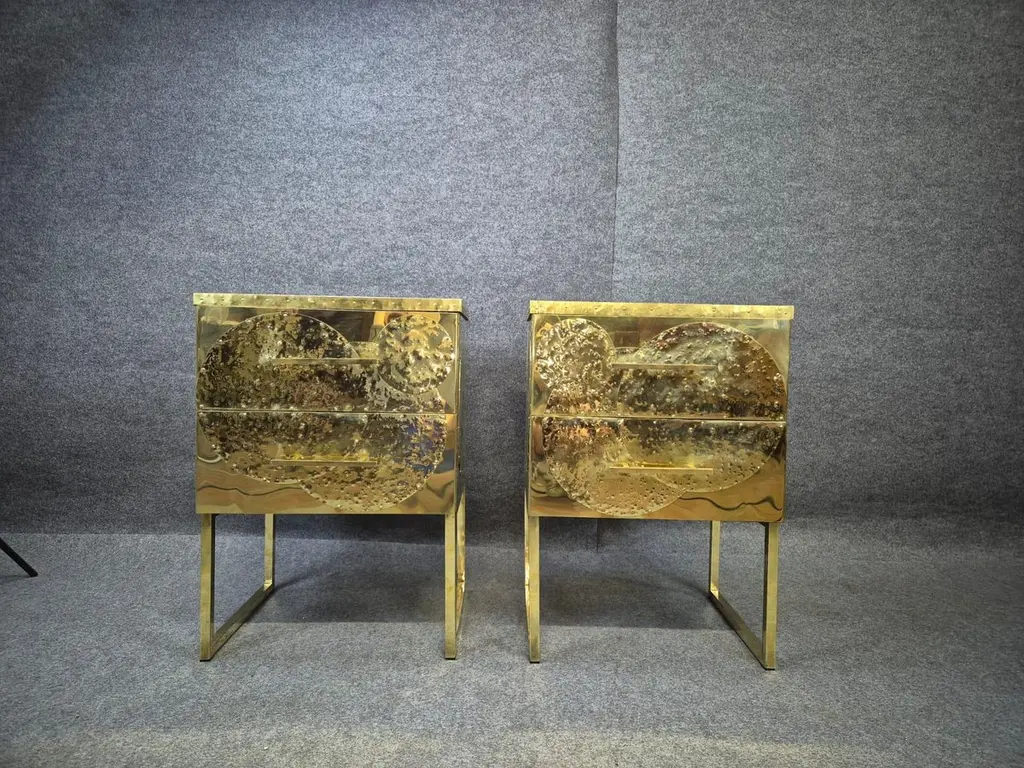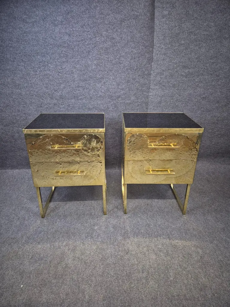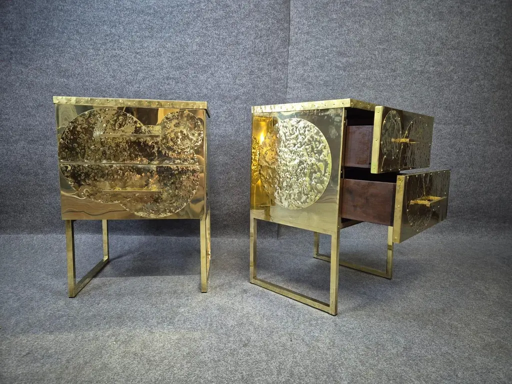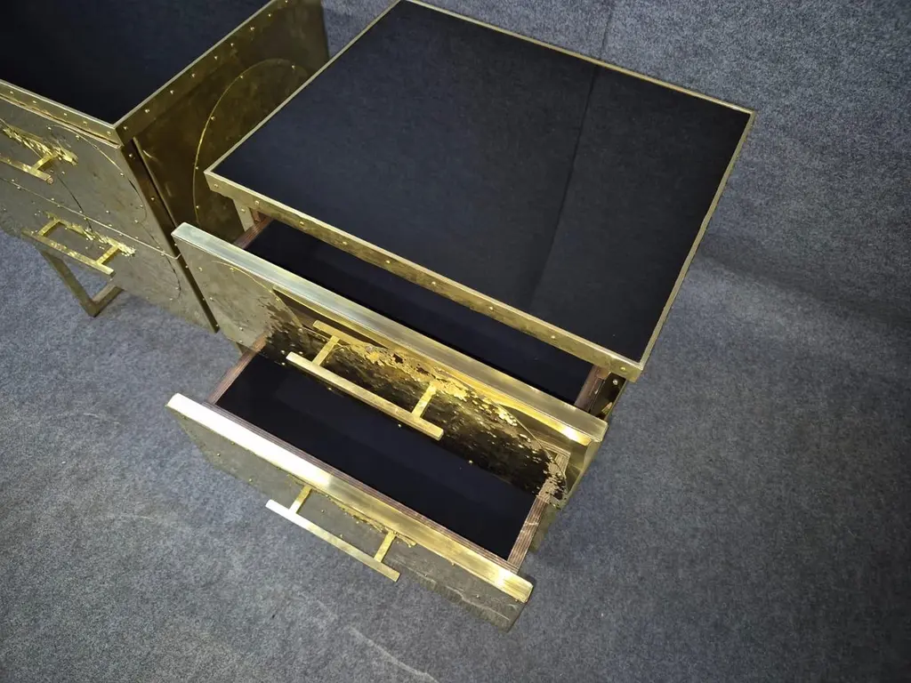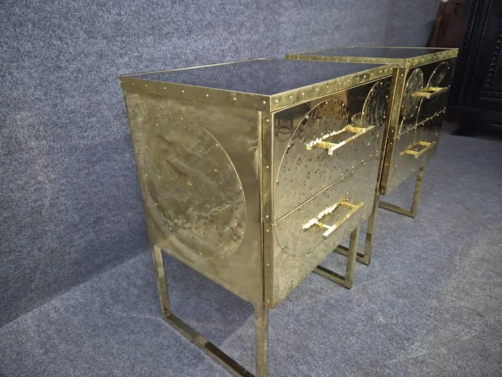 Set Of Hand-Rebutted Brass Nightstands" Available
