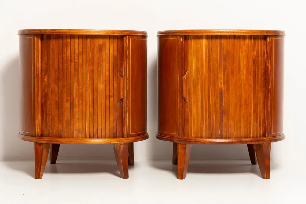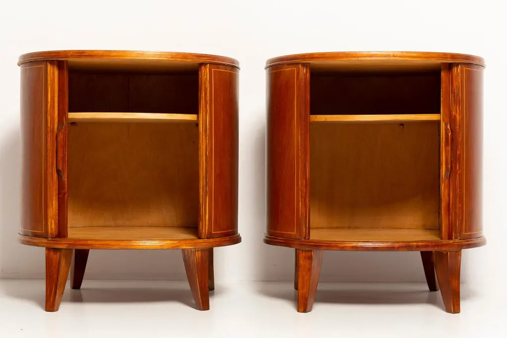 Set of two bedroom night tables from the 1960s. It was manufactured in Poland. They was made of beech wood, it was refreshed and fully renovated.Very good vintage condition.