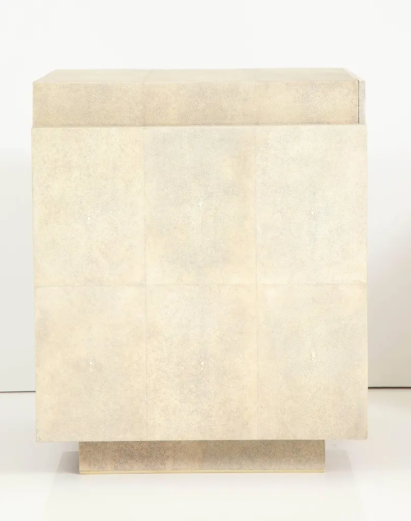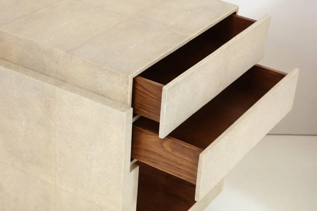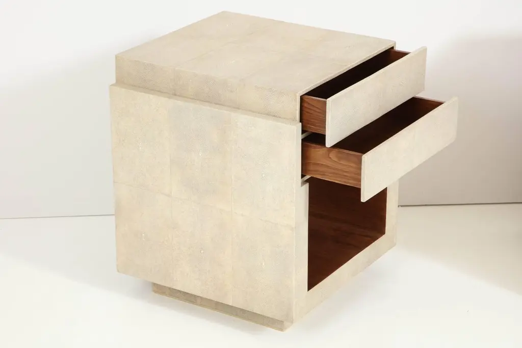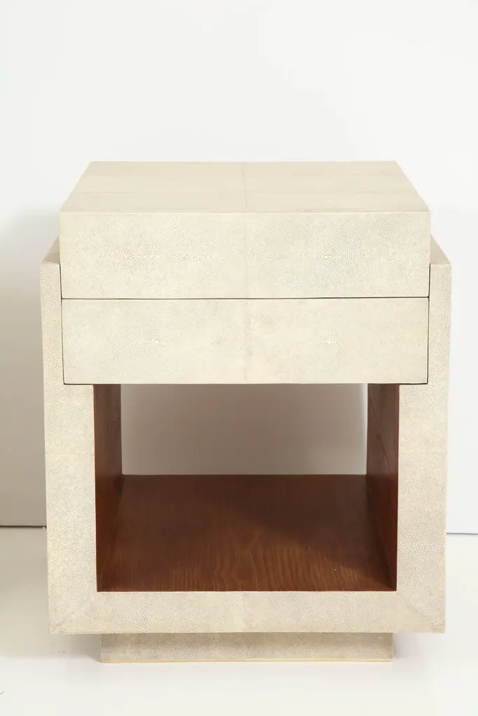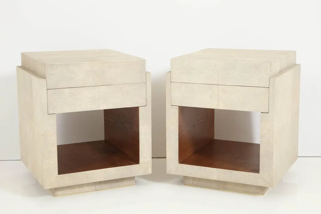 Shagreen Bedside Tables & Side Tables, Cream Color Shagreen & Palm Wood