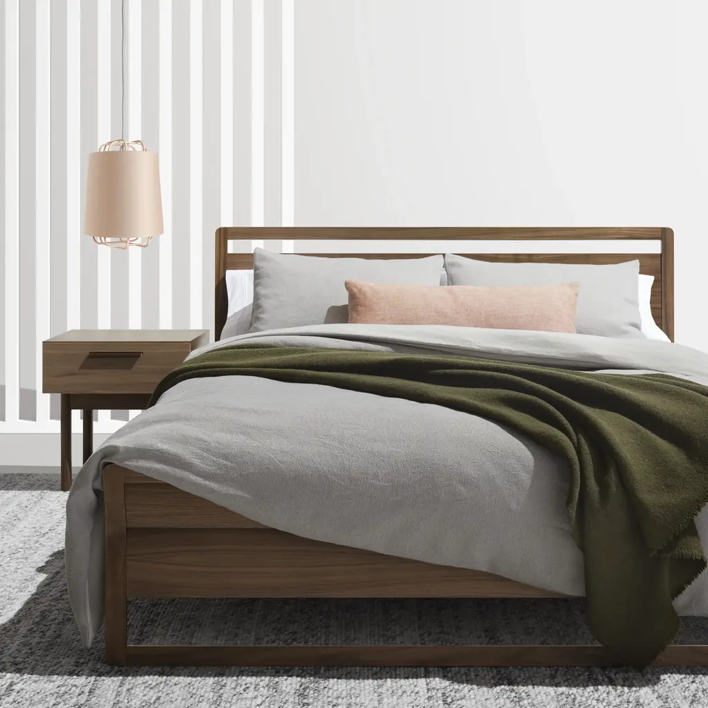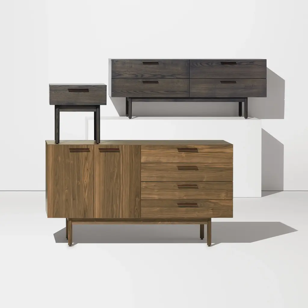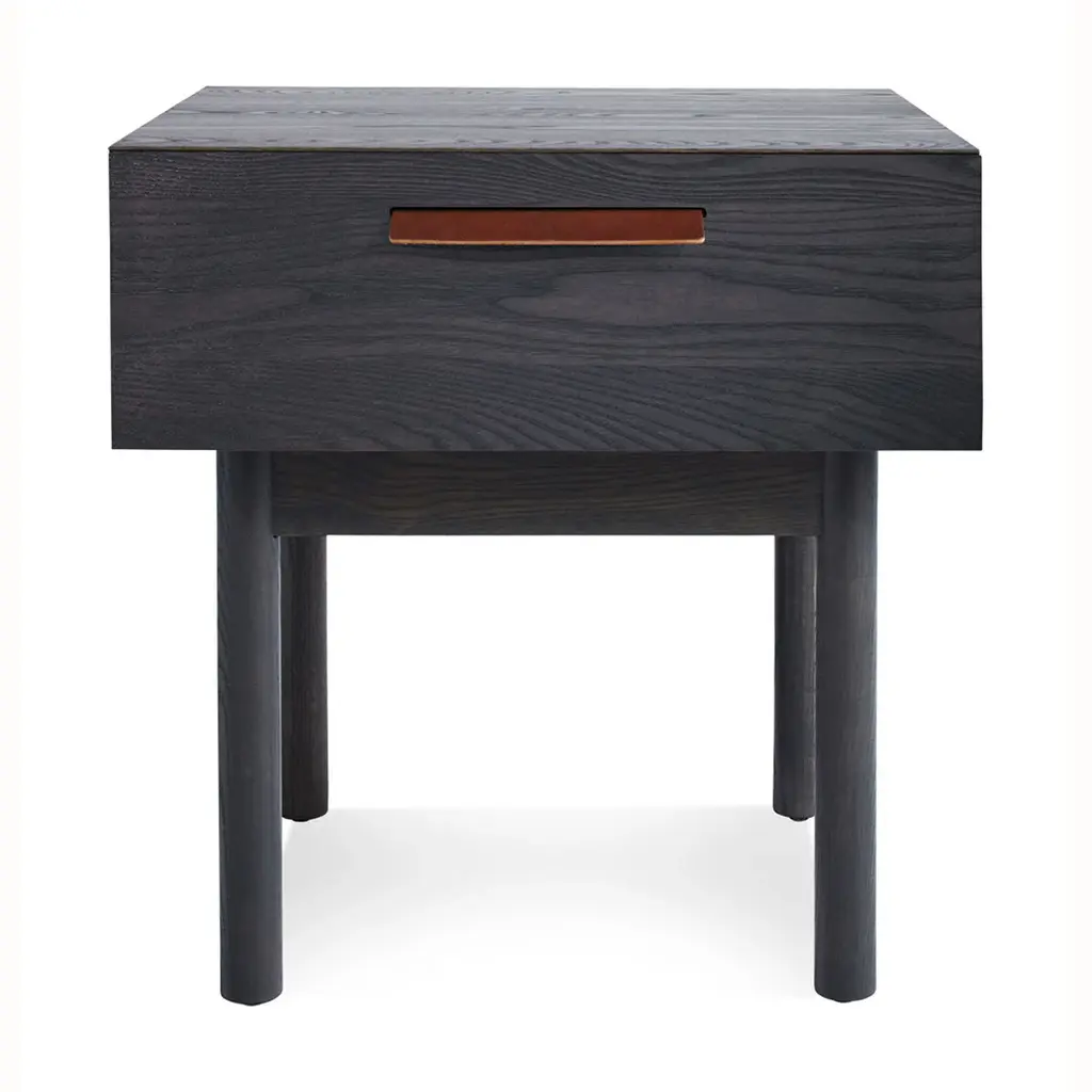 The Blu Dot Shale Bedside Table is as clean and compact as a modern table gets. Featuring solid wood construction and a supremely refined silhouette, Shale is both practical and stylish, with full grain leather pulls and ample storage in its roomy drawer. Shale is an elegant choice for bedroom, living room or dining room. Features