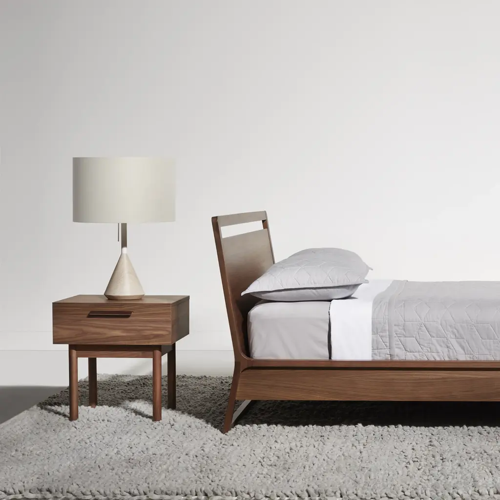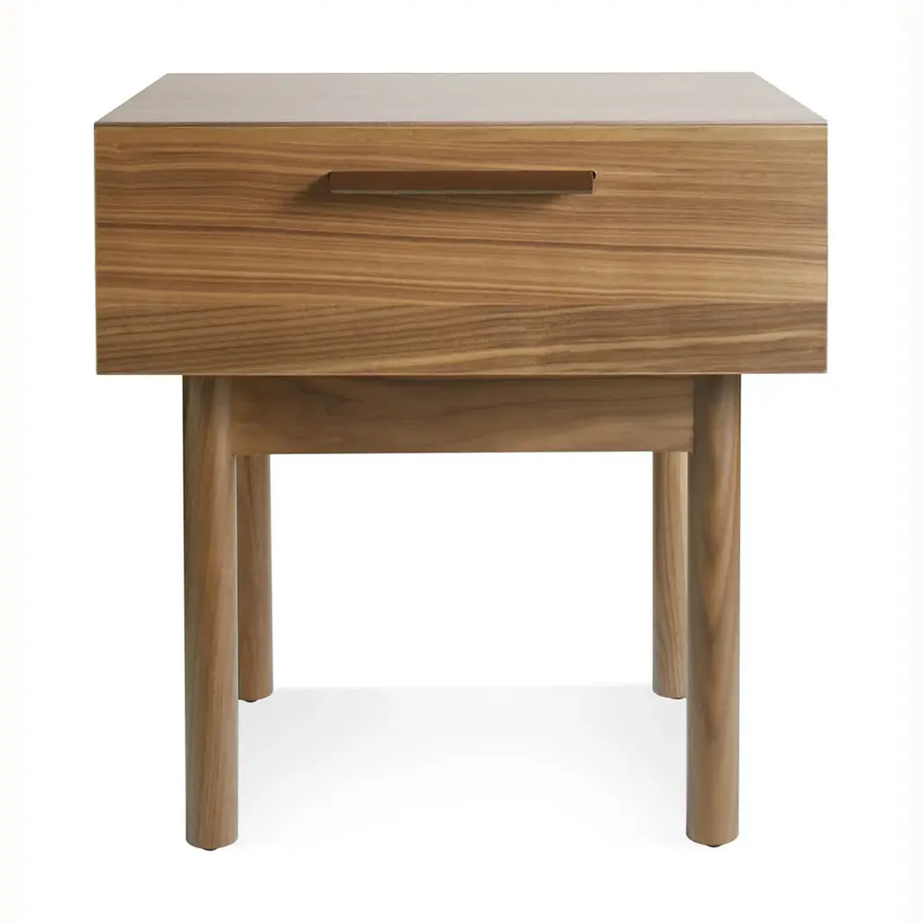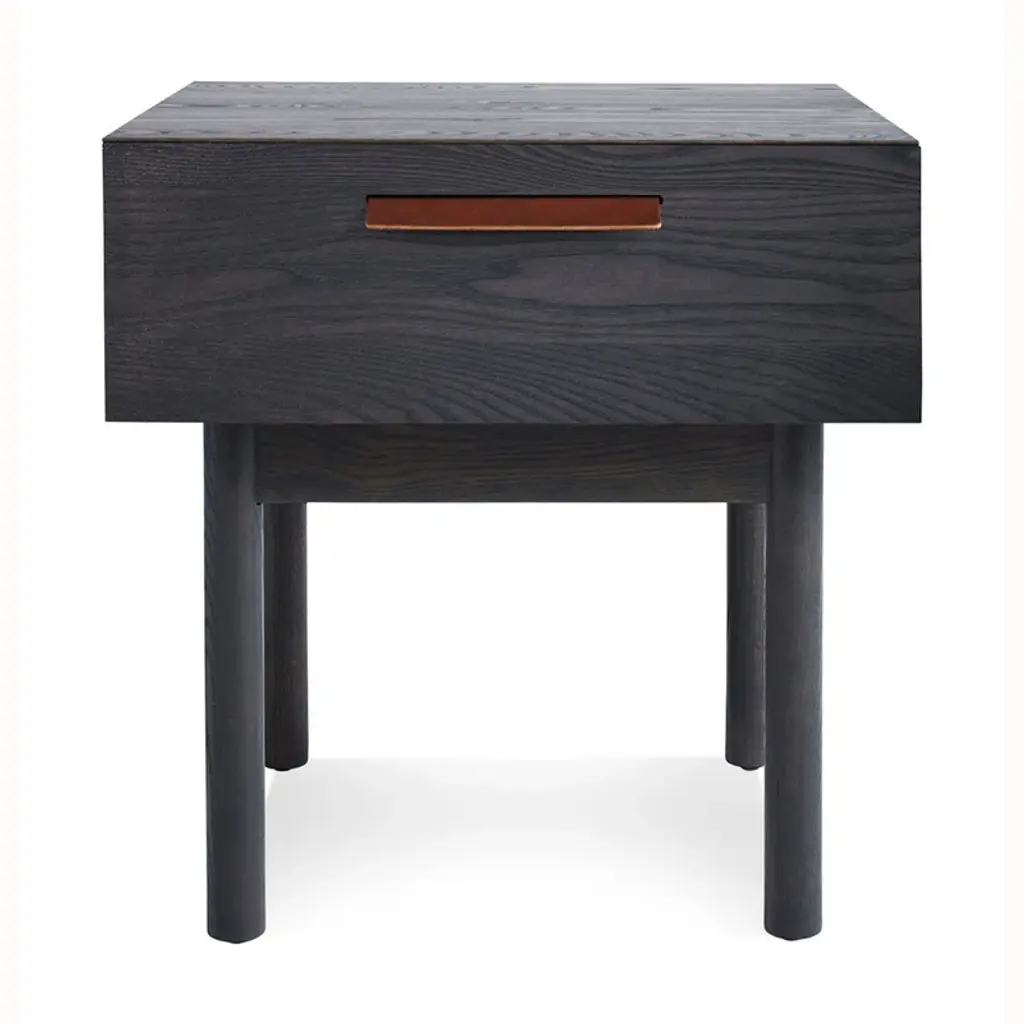 The Blu Dot Shale Bedside Table is as clean and compact as a modern table gets. Featuring solid wood construction and a supremely refined silhouette, Shale is both practical and stylish, with full grain leather pulls and ample storage in its roomy drawer. Shale is an elegant choice for bedroom, living room or dining room. Features