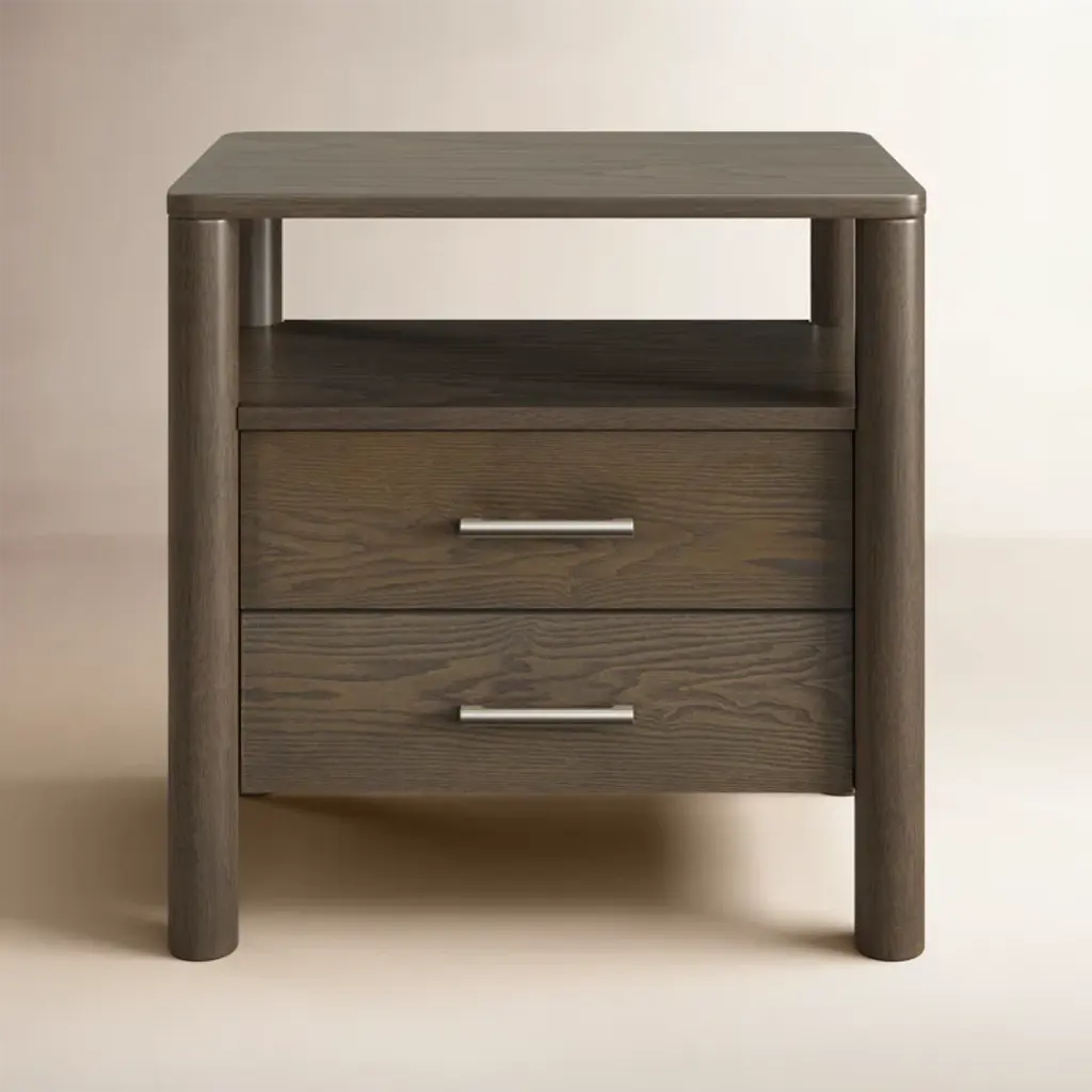 Layers of clean details. Warm wood and full grain leather pulls add storage panache and practicality to the bedroom, living room or dining room.
