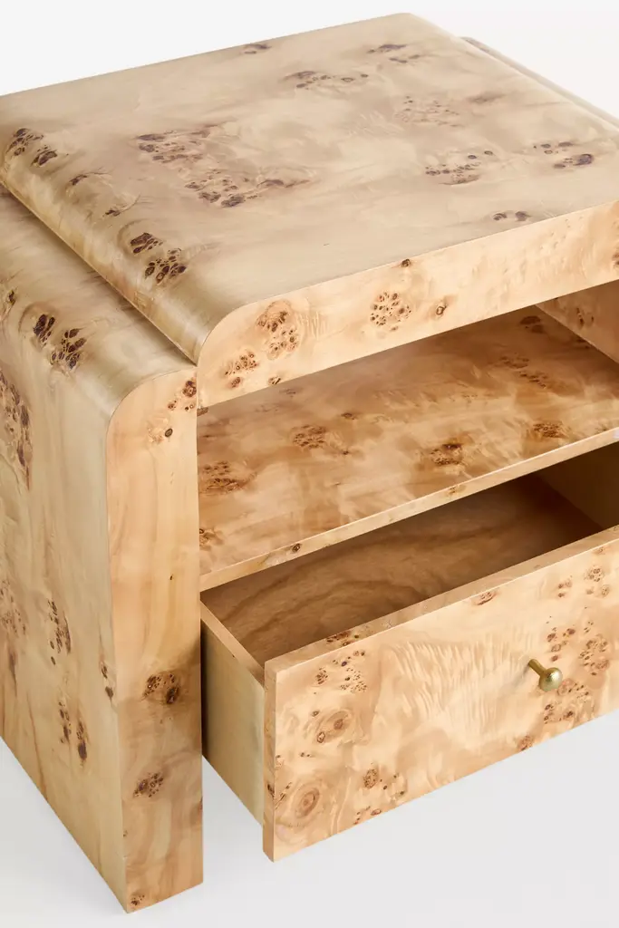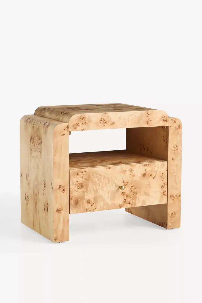 Characterized by its natural burl wood finish, the Shura Nightstand is naturally timeless and a sought-after bedside storage solution. For ordering assistance and more, please [contact us](https://www.anthropologie.com/help/contact-us#contact-us-section-2). For aesthetic advice and tips to help decorate your space, enjoy our complimentary [home styling services](https://www.anthropologie.com/help/personal-styling-home-decor). For more information on the materials and techniques of this piece, [click here](https://www.anthropologie.com/help/material-care-guide).