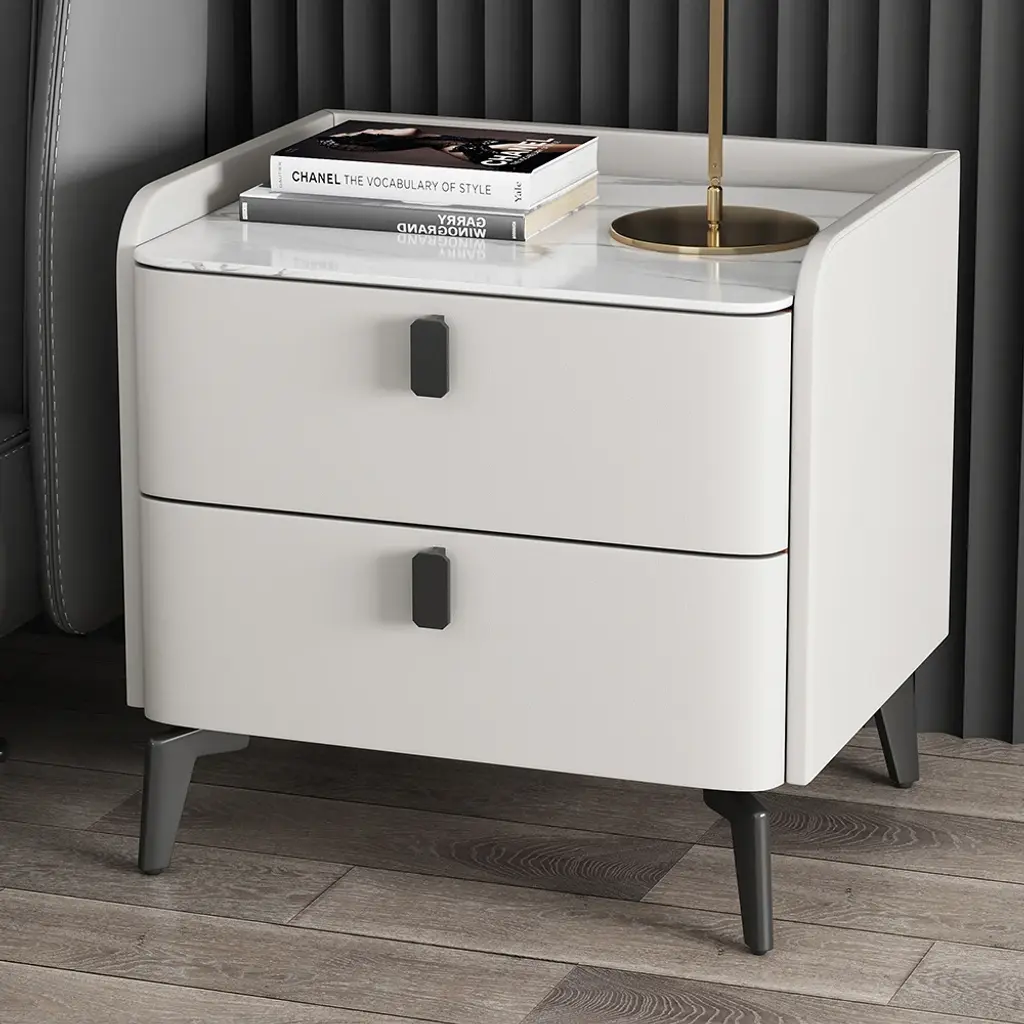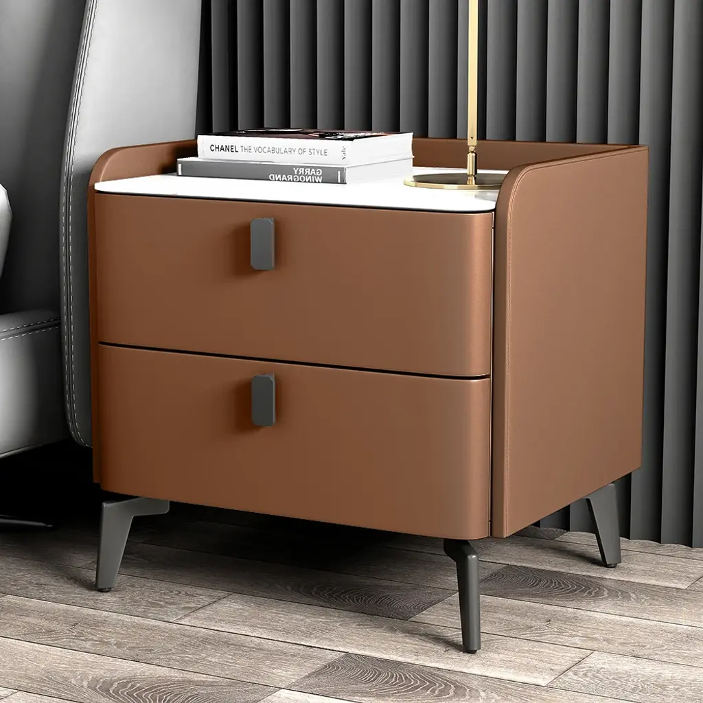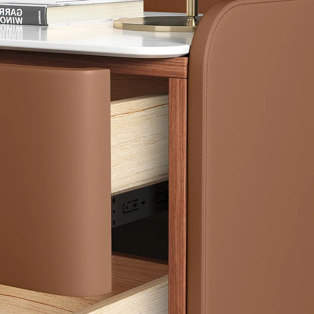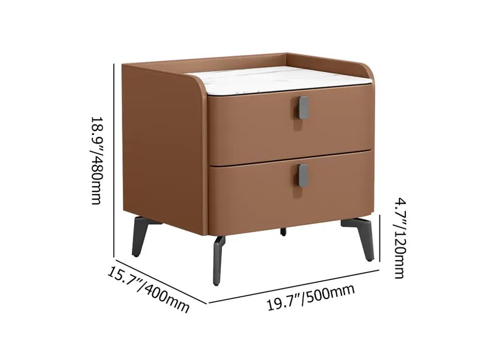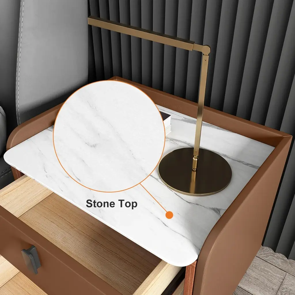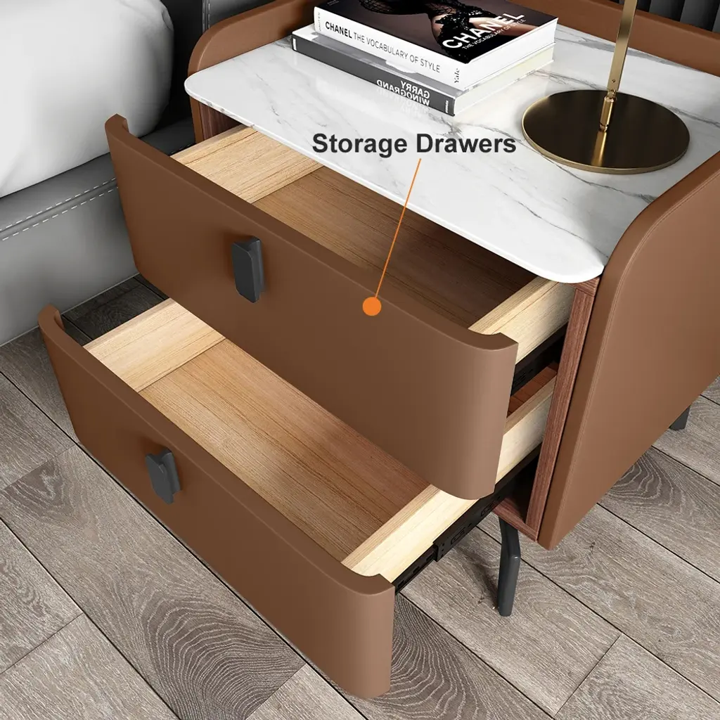 Sintered Stone Top 2-Drawer Leather Nightstand