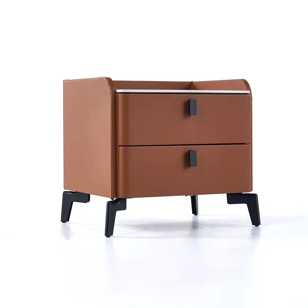 Elevate your bedroom with this chic orange nightstand featuring a luxurious faux leather finish and a durable sintered stone top. The two spacious drawers provide ample storage for your bedside essentials, while the sleek design adds a touch of sophistication to your space.