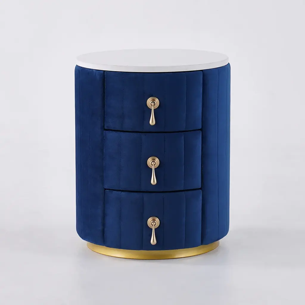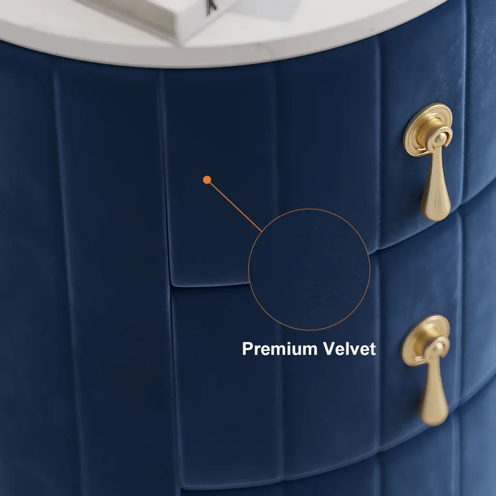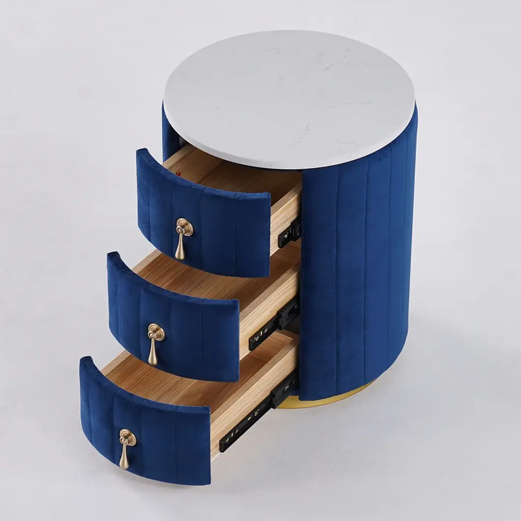 Sintered Stone Top 3-Drawer Round Velvet Nightstand