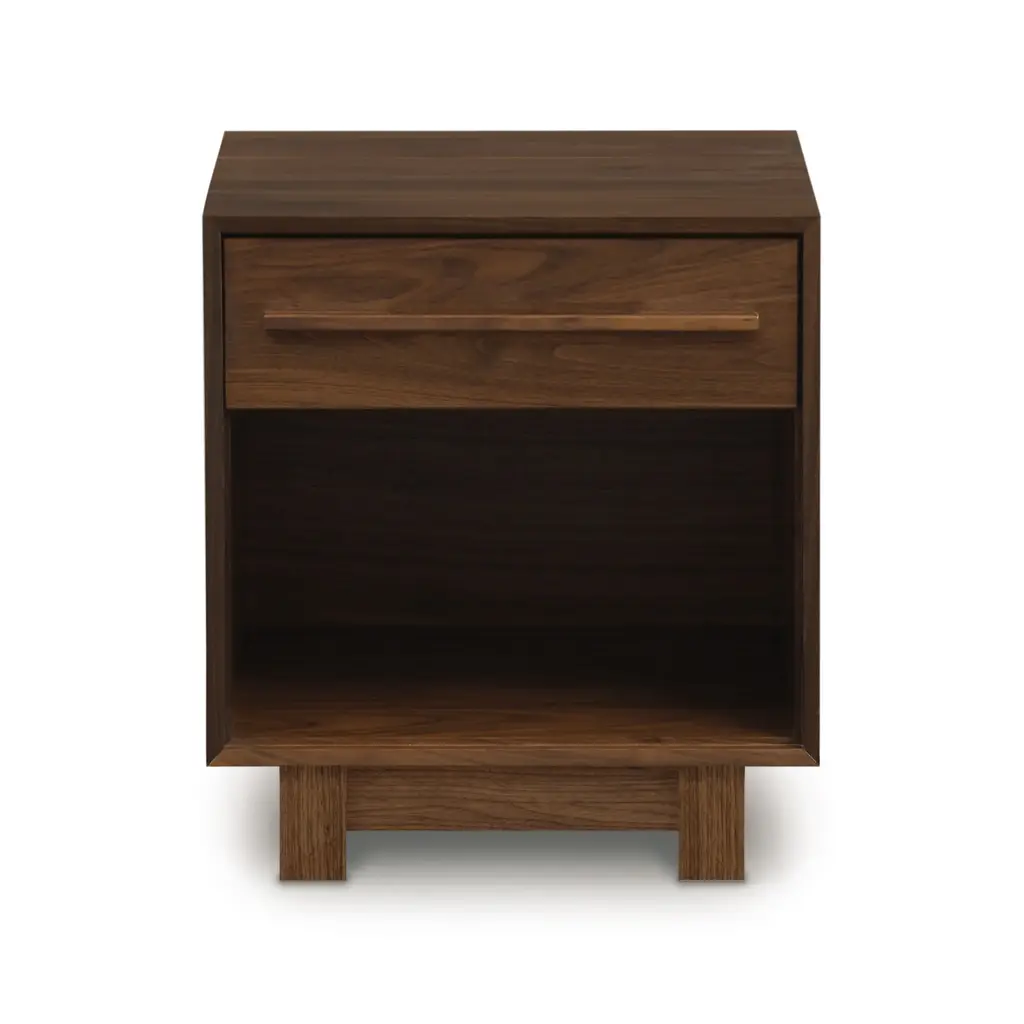 Staying true to the mid-century modern style that Copeland Furniture is so well known for, Copeland has once again outdone themselves with the Sloan 1-Drawer Nightstand. A contemporary feeling is tangible in every line, angle and detail. From the crisp mitered corners to the robust legs, you will marvel at the one-of-a-kind characteristics found in the natural hardwood construction. Flank our matching Sloane Bed with a pair of these outstanding nightstands and create your own designer bedroom with a plush inviting atmosphere.Base price represents nightstand in natural oakShown in natural walnutMatching furniture available in our Sloane Furniture Collection