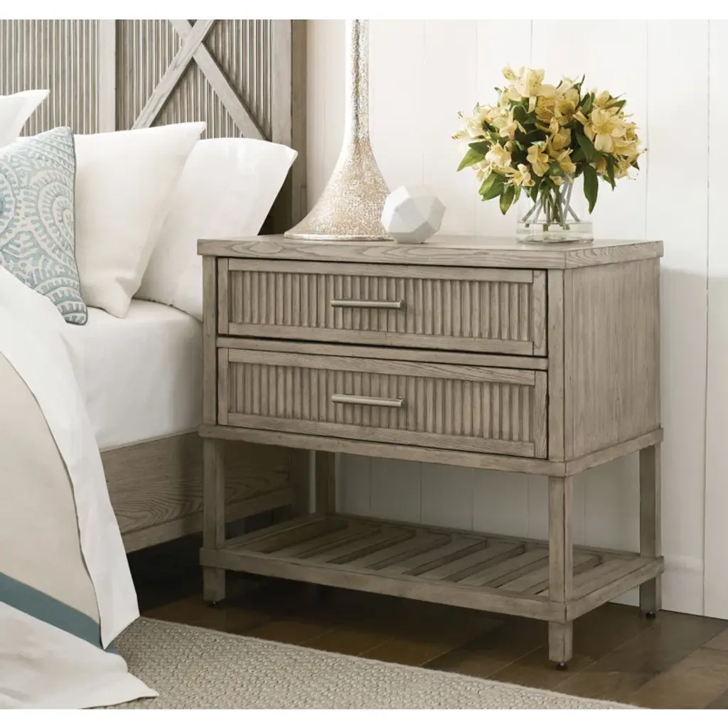 Inspired by a beautiful spot the Damien collection reflects a laid-back, natural style and is designed for the consumer seeking casual décor. Damien layers textured surfaces with the character of flat-cut Elm wood grain. Clean lines and careful attention to scale give these elements visual balance and provide the group with a personality devoid of unnecessary embellishment.