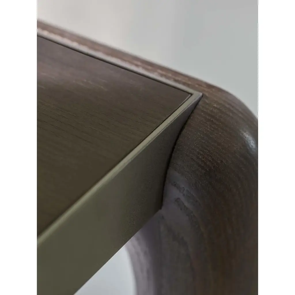 The Gaudi bedside tables feature a simple yet refined design, combining wood, metal, and glass. Its precious curved solid wood frame, available in a variety of finishes, lends an elegant touch to any bedroom. The capacious metal drawer allows for careful storage of personal items, making it both functional and stylish.