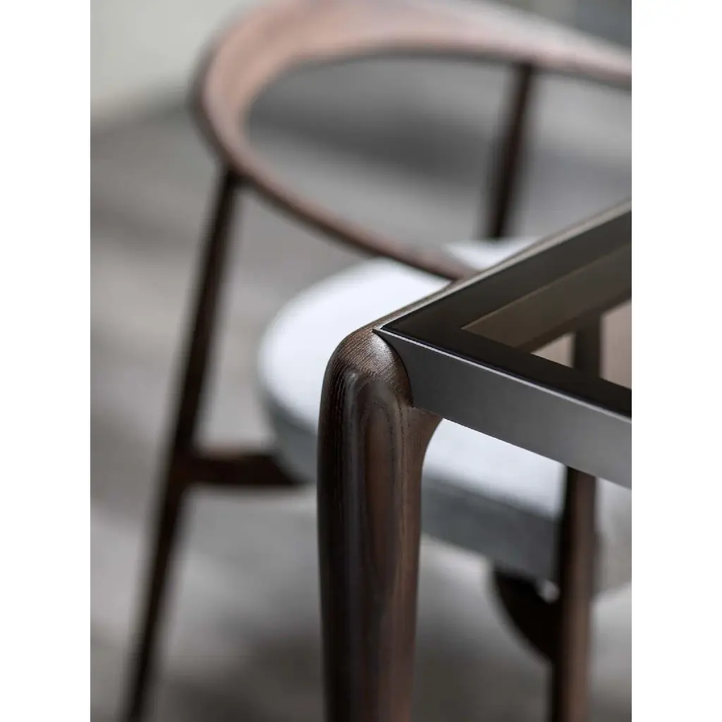 The Gaudi bedside tables feature a simple yet refined design, combining wood, metal, and glass. Its precious curved solid wood frame, available in a variety of finishes, lends an elegant touch to any bedroom. The capacious metal drawer allows for careful storage of personal items, making it both functional and stylish.