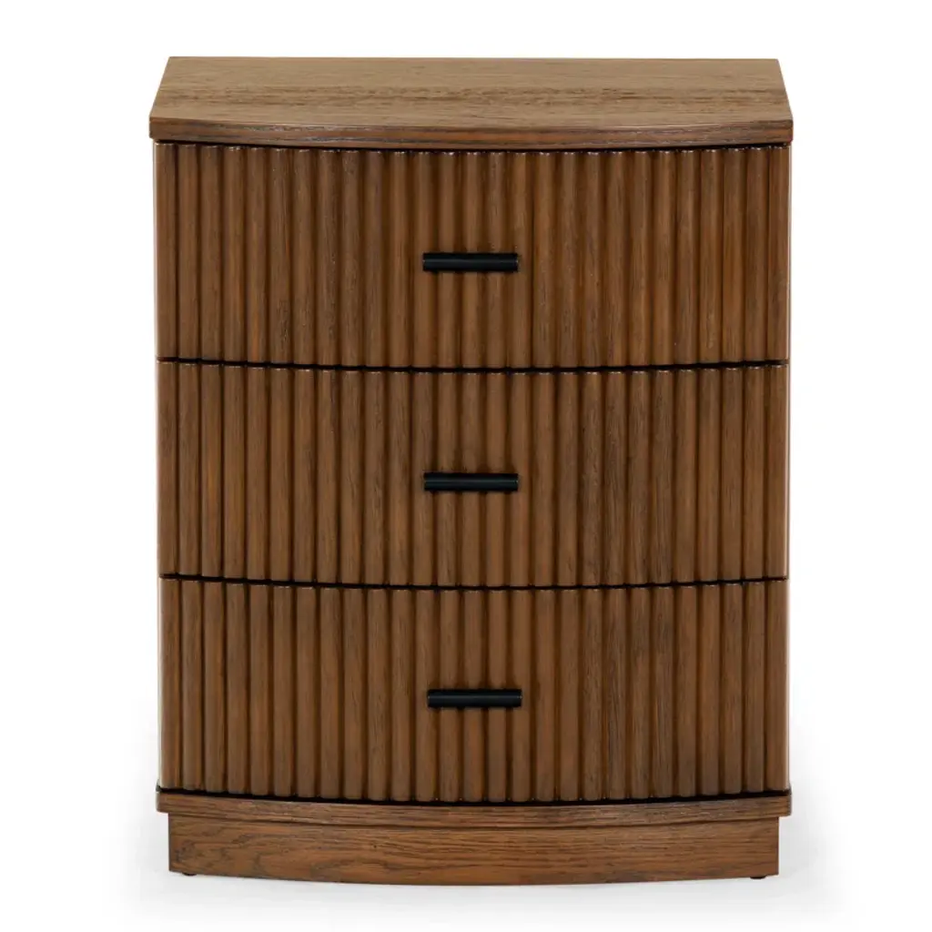 Solid Wood Nightstand Semi-Circle Natural Rattan Bedside Table With Open Shelves