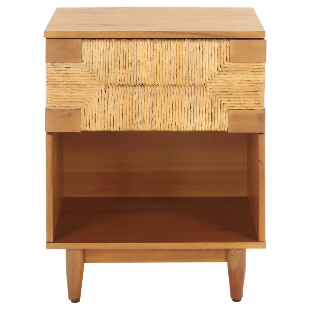 Bring warmth, brightness, and a whole lot of texture to your bedroom, guestroom, or living room with this stunning nightstand. It features a single felt-lined drawer with metal glides and an extension that offers extra storage for all your bedside possessions. The drawer front is adorned with a square drawer pull to give a pop of modern style, while the natural rattan is meticulously hand-wrapped around the wood frame to give it texture and dimension that brings a gorgeous coastal style.