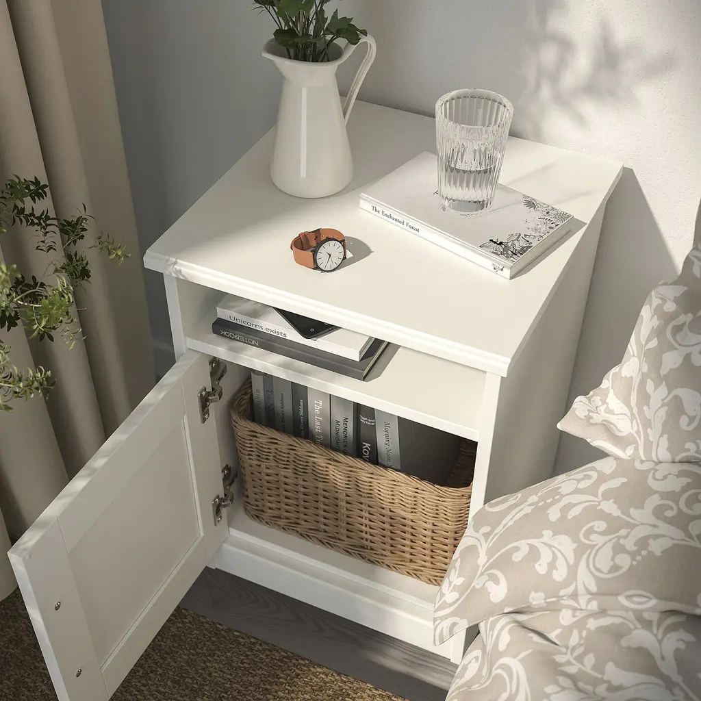 SONGESAND Nightstand - white 16 1/2x15 3/4 ". The door can be hung to open either right or left. A cable outlet allows you to lead the cords out the back, so they’re not seen. Coordinates with other furniture in the SONGESAND series.