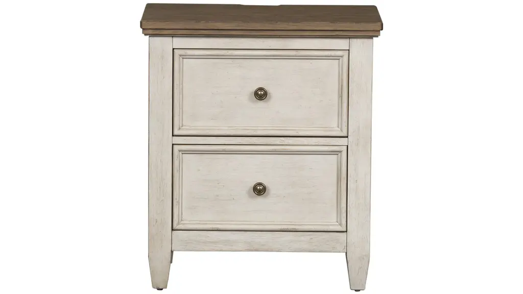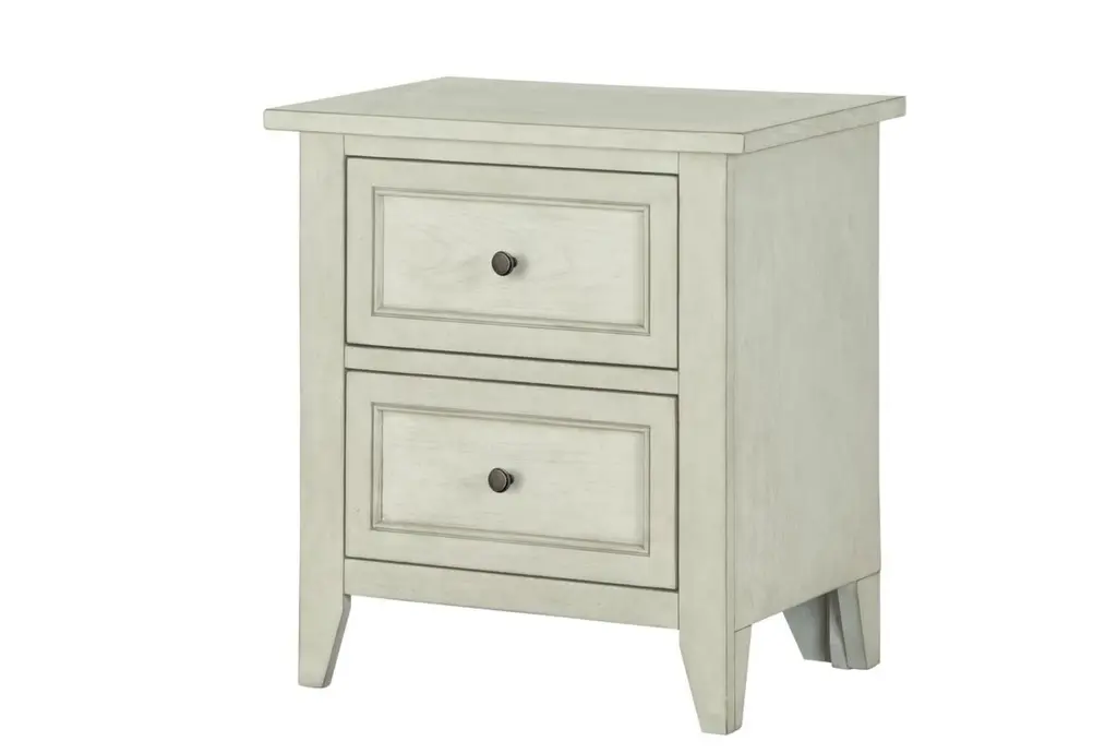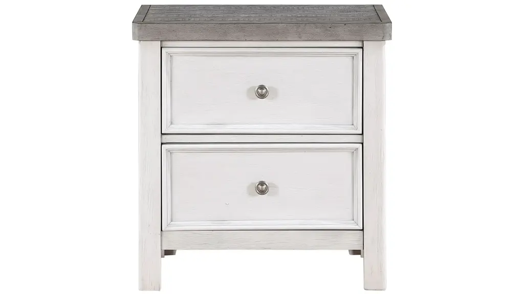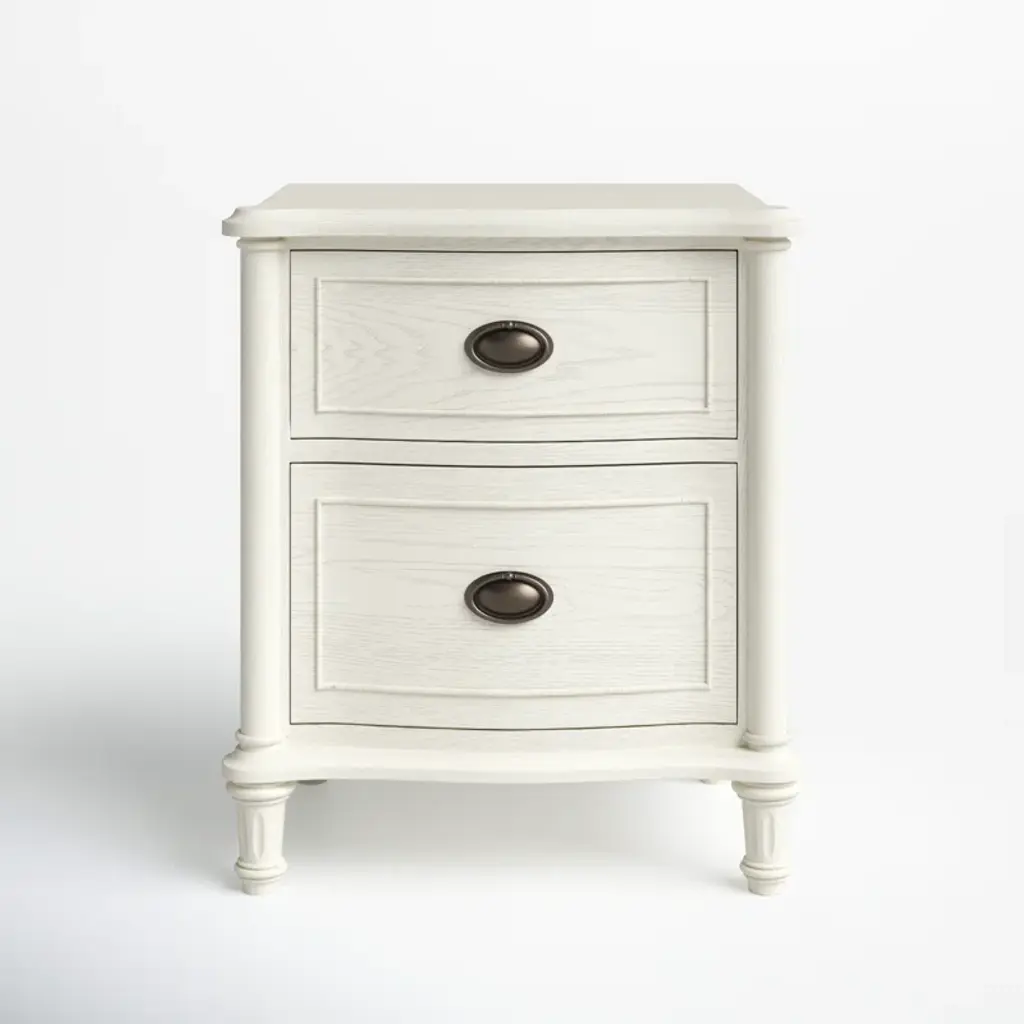The Soren 2 Drawer Nightstand is a classic piece made from Cathedral Ash Veneer and Solid Asian Hardwood, perfect for adding a touch of elegance to your bedroom. Its weathered white color gives it a timeless appeal, while its two drawers provide ample storage space.