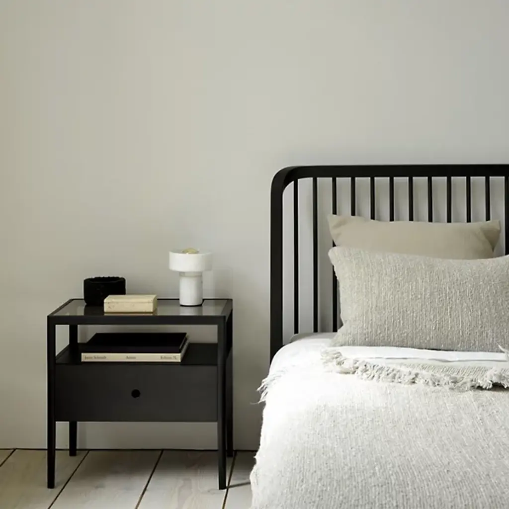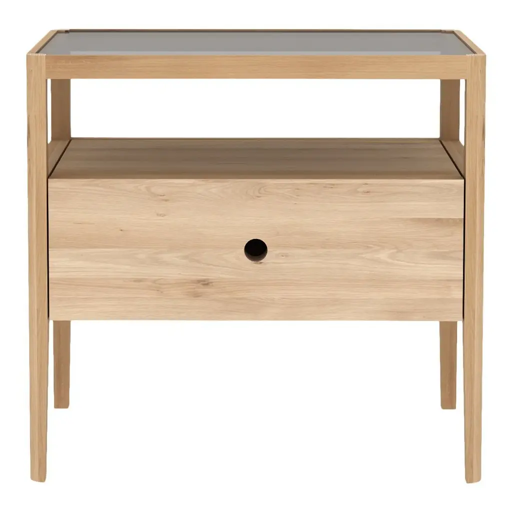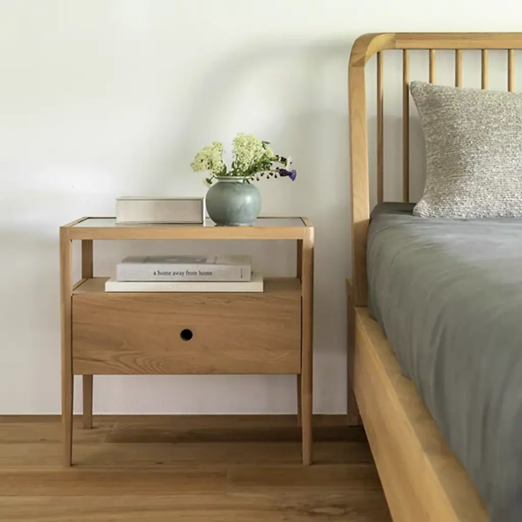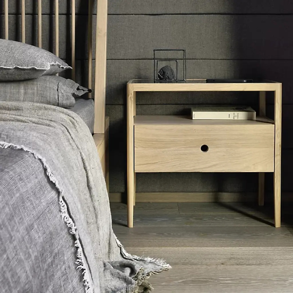 Part of the spinning wheel inspired collection, the Spindle Bedside Table by Ethnicraft provides a unique touch to any bedroom style. The bedside table is offered in a variety of wooden finishes, while also providing the user with a glass table top that can be easily cleaned. Crafted out of either oak or walnut wood with a rustic and modern feel, this bedside table will definitely find a place in any home.