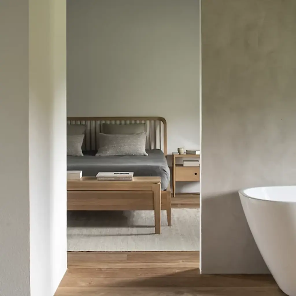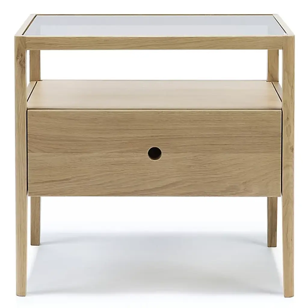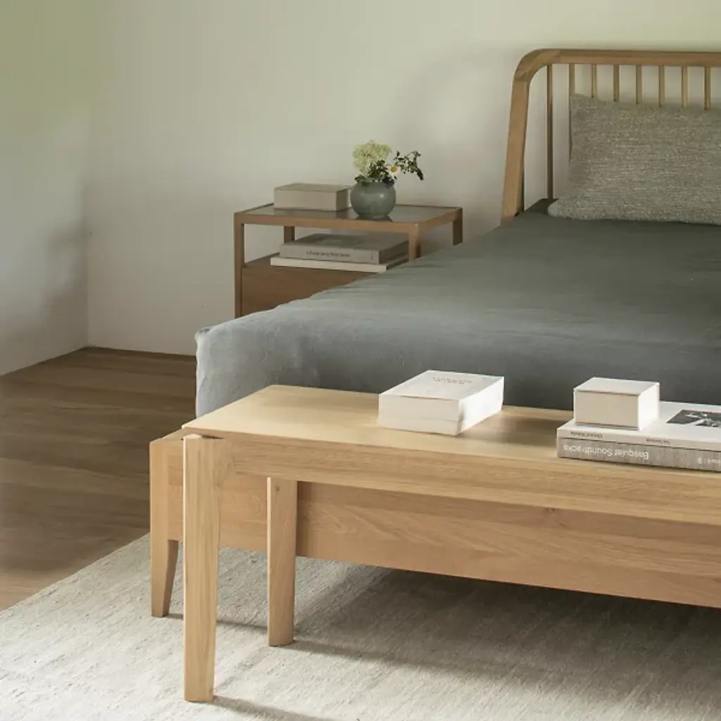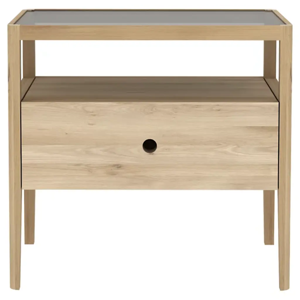 Part of the spinning wheel inspired collection, the Spindle Bedside Table by Ethnicraft provides a unique touch to any bedroom style. The bedside table is offered in a variety of wooden finishes, while also providing the user with a glass table top that can be easily cleaned. Crafted out of either oak or walnut wood with a rustic and modern feel, this bedside table will definitely find a place in any home.