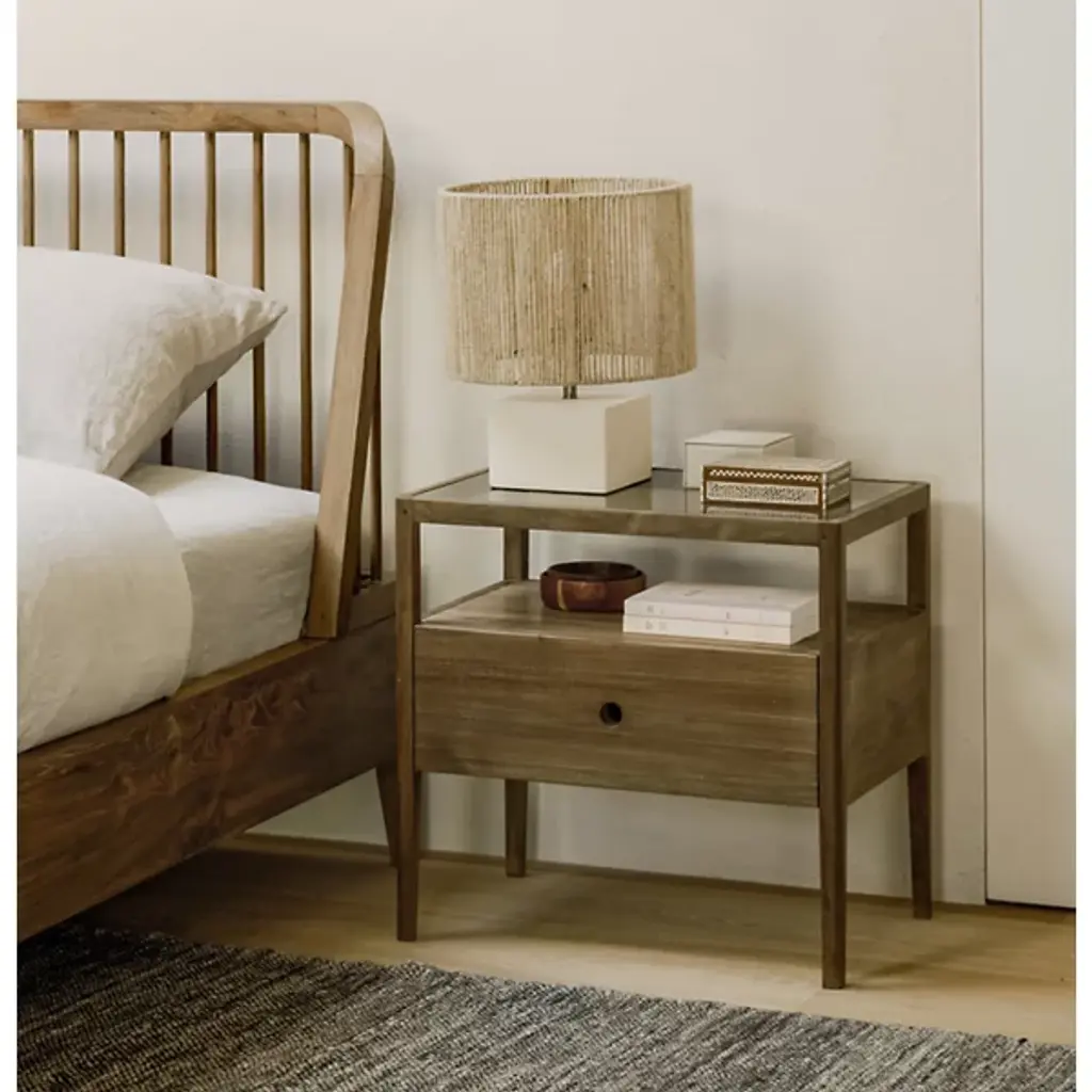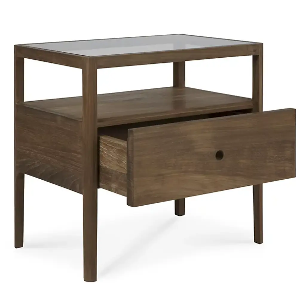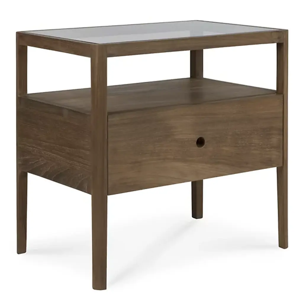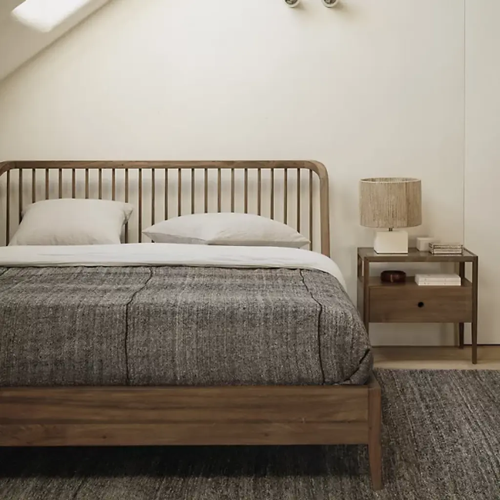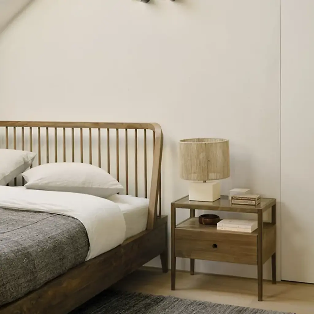 The Spindle Bedside Table from Ethnicraft provides a soothing rustic presence to interior spaces. Excellent as a bedside companion or repurposed as a side table, it’s designed by Nathan Yong to transform its surroundings. Fashioned from reclaimed teak, the wood is FSC certified for sustainability, and each element is hand-finished for a bespoke appeal. A single drawer expands its storage options, while a transparent upper shelf keeps its form light and useful, offering a captivating contrast.