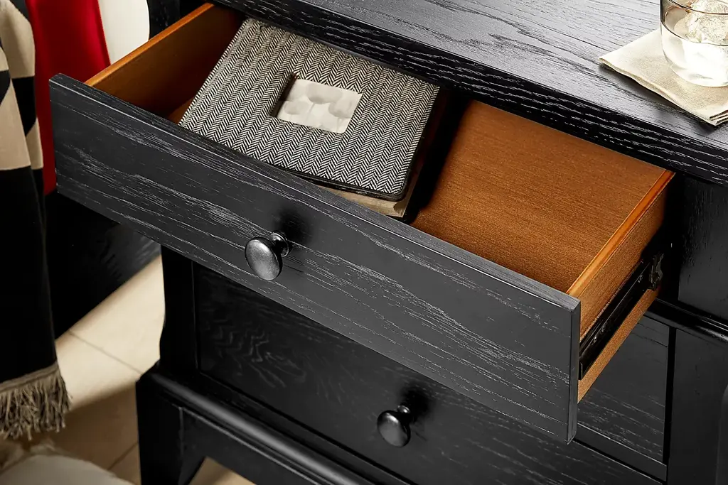 Settle gently into the timeless sanctuary of the Springville collection, embraced by the powerful calm waiting behind life's rush and noise. This handsomely detailed nightstand showcases a soothing black finish and traditional style notes like tapered square legs and subtle chamfer details with decorative metal knobs in black. For convenient overnight charging of your favorite devices, USB-A and USB-C ports are built right in.