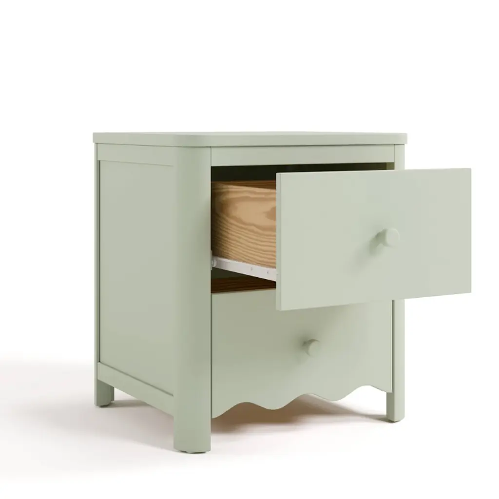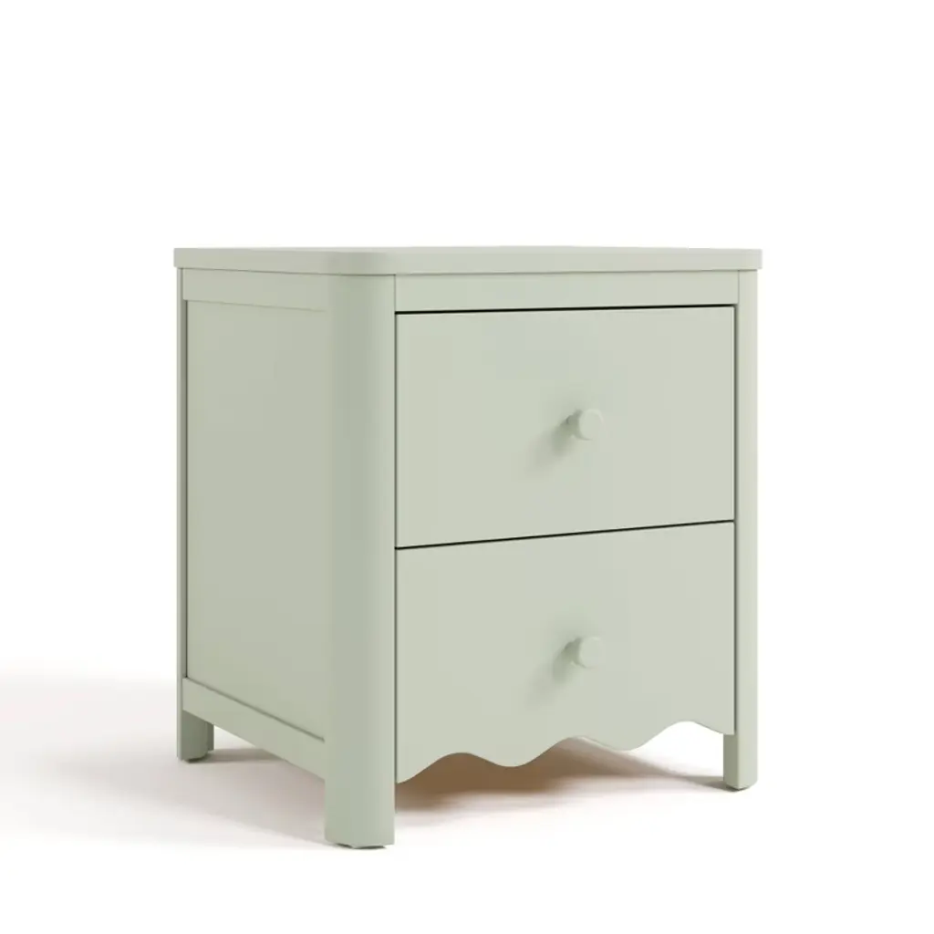 The Storkcraft Casablanca 2 Drawer Nightstand is part of Storkcraft’s exclusive, ultra-premium “Art of Nursery” Collection. As part of Storkcraft’s “Art of Nursery” Collection, the Casablanca utilizes premium materials and designer details. The Casablanca's iconic aesthetic is highlighted by its soft waves, and also features softly rounded posts to further enhance its overall European aesthetic.The Casablanca is GREENGUARD Gold Certified: furniture with GREENGUARD Gold certification has been screened for over 10,000 chemicals and volatile organic compounds (VOCs) and meets or exceeds strict chemical safety standards. The Casablanca is crafted from wood and wood composites, and its applied finish has been tested to meet or exceed the applicable ASTM and CPSIA safety standards. The Casablanca is expert tested by third-party, accredited laboratories to meet or exceed all applicable category voluntary and mandatory safety standards. Designed as a beautiful and convenient storage solution for your kids bedroom, the Casablanca offers two spacious drawers and features softly rounded posts. Storkcraft has been recognized with industry awards from the likes of Fast Company, Parents, Baby Innovation Awards, and more, and is the proud recipient of the Parent Tested Parent Approved (PTPA) Seal of Approval for nursery and children’s bedroom furniture. The Casablanca is backed by Storkcraft’s supportive, real-life Customer Care team and 1-year limited manufacturer’s warranty. Assembly required (two people recommended for assembly). Furniture anti-tip kit included. An exclusive, in-house, Storkcraft original design — and part of Storkcraft's flagship Art of Nursery Collection.