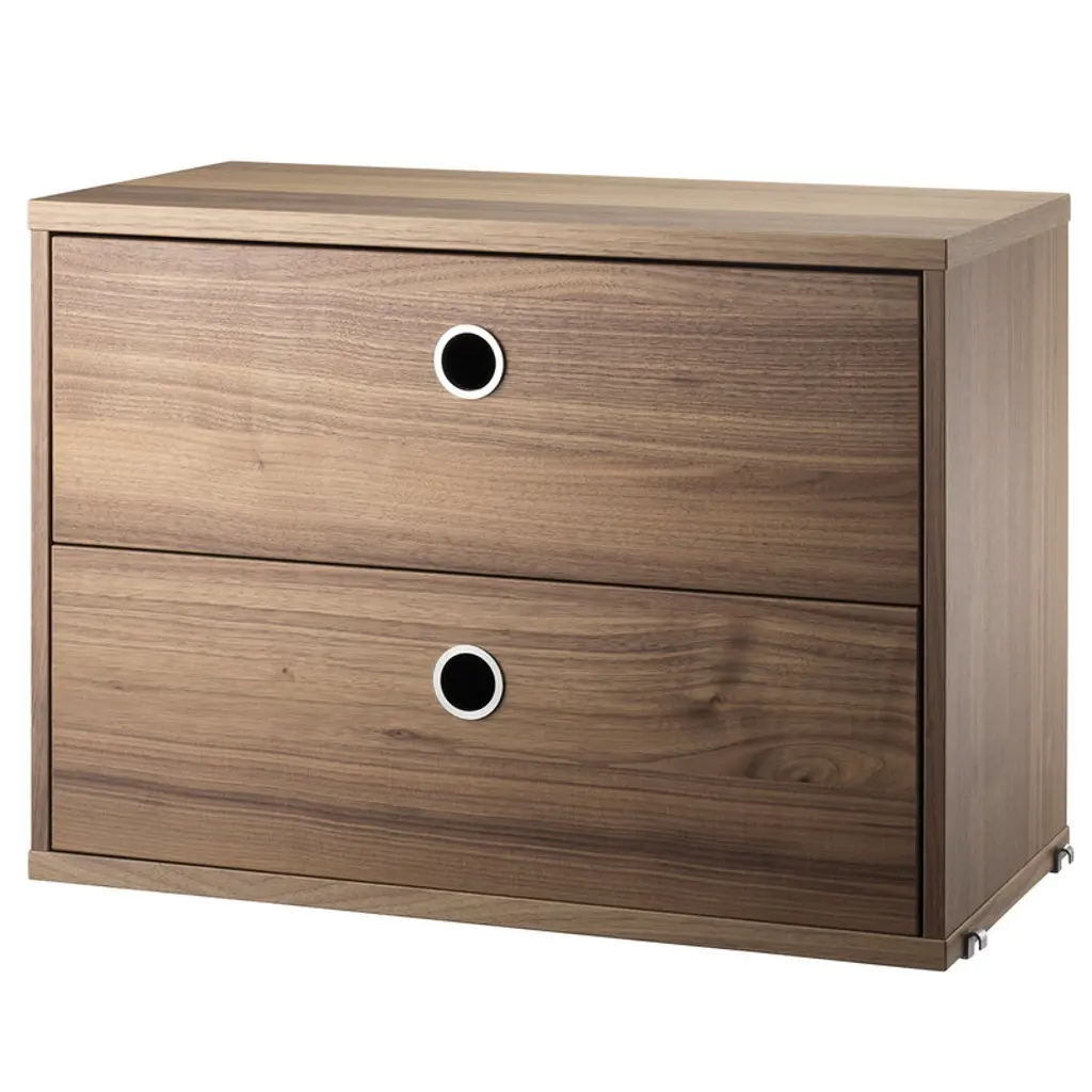 STORKLINTA Nightstand - dark brown oak effect/with 2 drawers 19 5/8x18 7/8x20 7/8 ". The STORKLINTA series makes it easy to create storage with a modern expression for bedrooms and hallways. Combine the chests of drawers, bedside tables and PAX doors in a way that suits you and your home.
