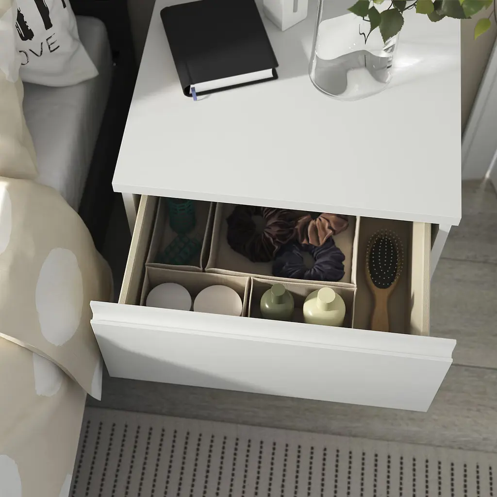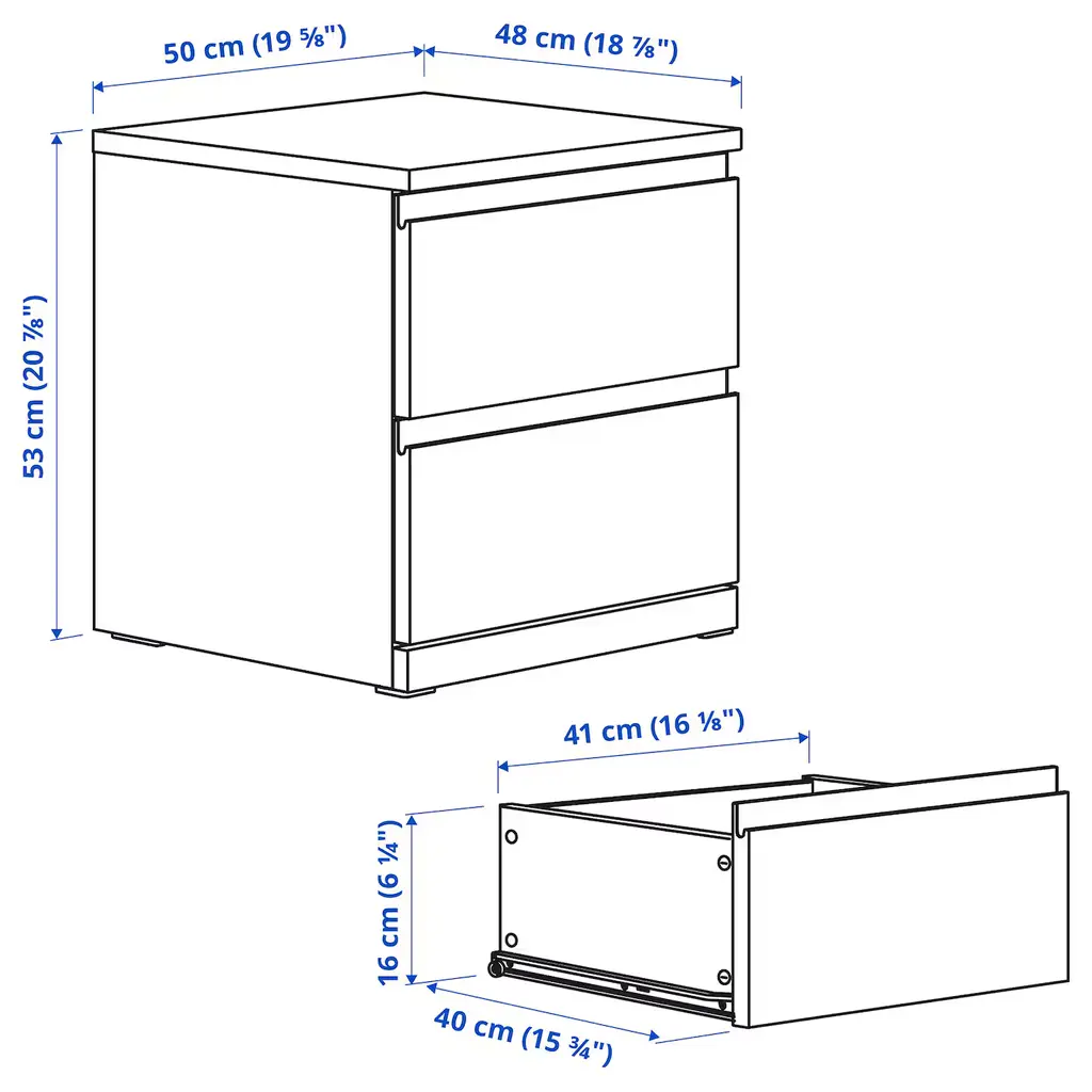 STORKLINTA Nightstand - white/with 2 drawers 19 5/8x18 7/8x20 7/8 ". The STORKLINTA series makes it easy to create storage with a modern expression for bedrooms and hallways. Combine the chests of drawers, bedside tables and PAX doors in a way that suits you and your home.