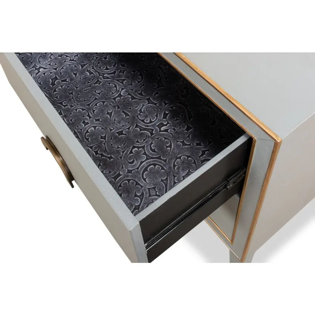 No need to hide this beauty away in an office. Rich brown leather is neatly applied to this 3-drawer desk with a hammered iron base.
