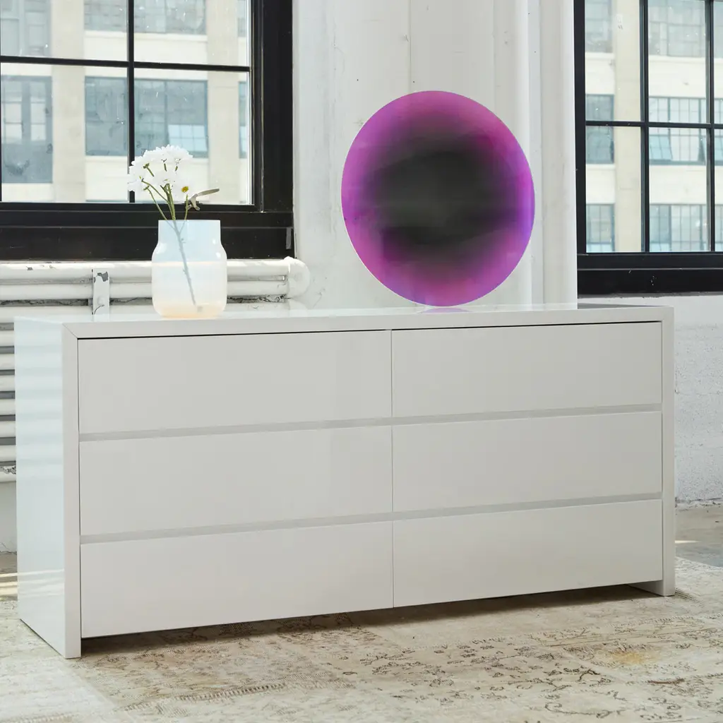 The Stowe Lacquer Dresser combines timeless sophistication with practical elegance, becoming a standout feature in your bedroom sanctuary. Its clean-lined silhouette and polished finish bring a sense of warmth and refinement, elevating the aesthetic of your space. Available in two versatile finishes—Stone or White—the Stowe Dresser adapts to your decor effortlessly, whether your style is modern, minimalist, or classic. The durable lacquer surface not only provides a sleek, high-gloss look but also ensures longevity and easy maintenance, offering beauty and practicality in equal measure. Designed with six spacious, soft-close drawers, this dresser ensures seamless and silent functionality, preserving the tranquility of your sleeping retreat. Whether you’re organizing wardrobe essentials, storing seasonal favorites, or tucking away bedding, its ample storage space helps you keep your bedroom clutter-free and effortlessly organized. Measuring 20" in depth, 64" in width, and 30" in height, the Stowe Lacquer Dresser balances generous storage capacity with a compact, horizontal profile. Its thoughtful dimensions make it an ideal choice for both large master suites and smaller bedrooms, maximizing utility without compromising style. Pair the Stowe Dresser with matching pieces from the Stowe collection, like the coordinating nightstand or chest, to create a cohesive and elevated bedroom ensemble. With its combination of sophistication, functionality, and eco-conscious design, the Stowe Lacquer Dresser transforms your space into a serene haven where style and substance harmoniously meet.