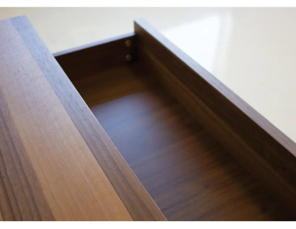 Crafted with exquisite walnut veneer, the Stowe Night Stand exudes timeless sophistication, adding a touch of warmth to your sleeping sanctuary. Its rich wood grain and sleek design create a harmonious blend of modernity and classic charm. Equipped with two or three soft-close drawers, this nightstand offers seamless and quiet operation, ensuring a serene atmosphere for your nightly retreat. The spacious drawers provide ample storage for your bedside essentials, keeping your space clutter-free and organized.