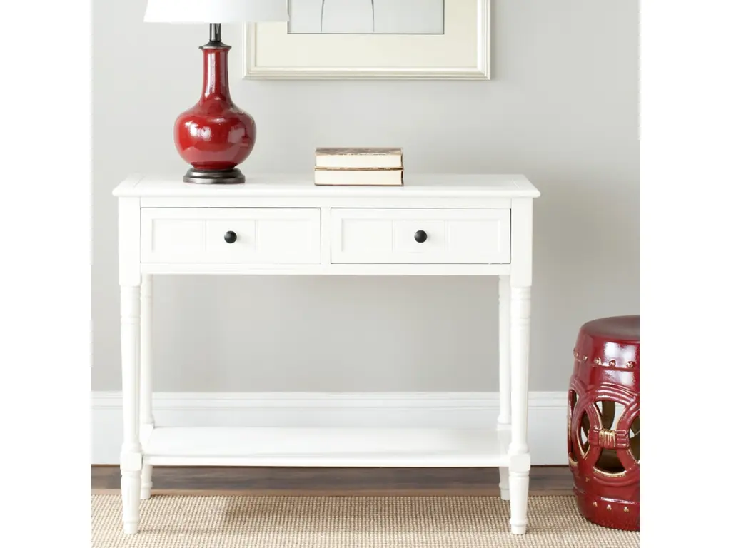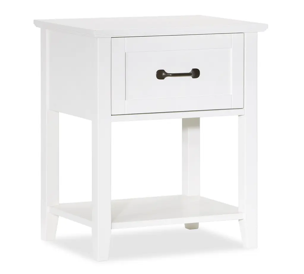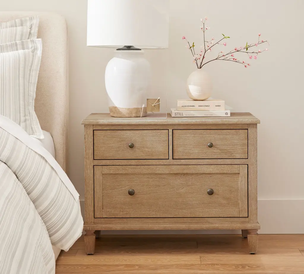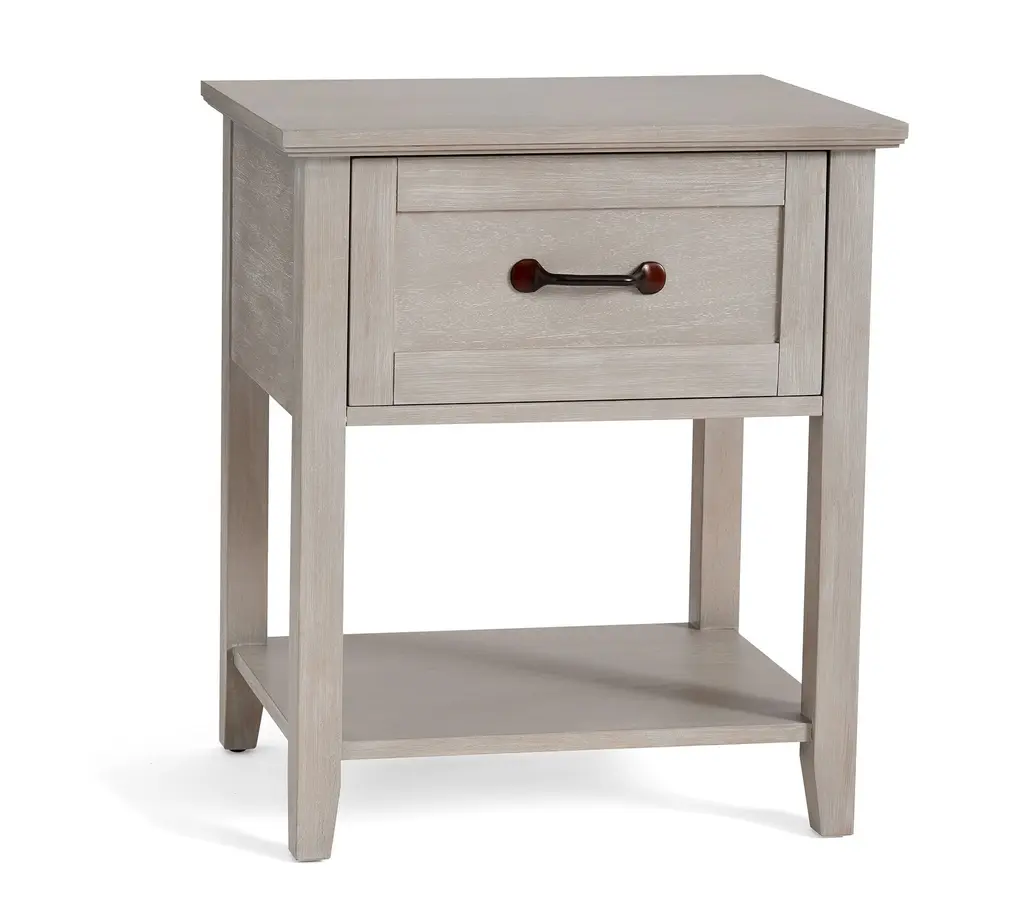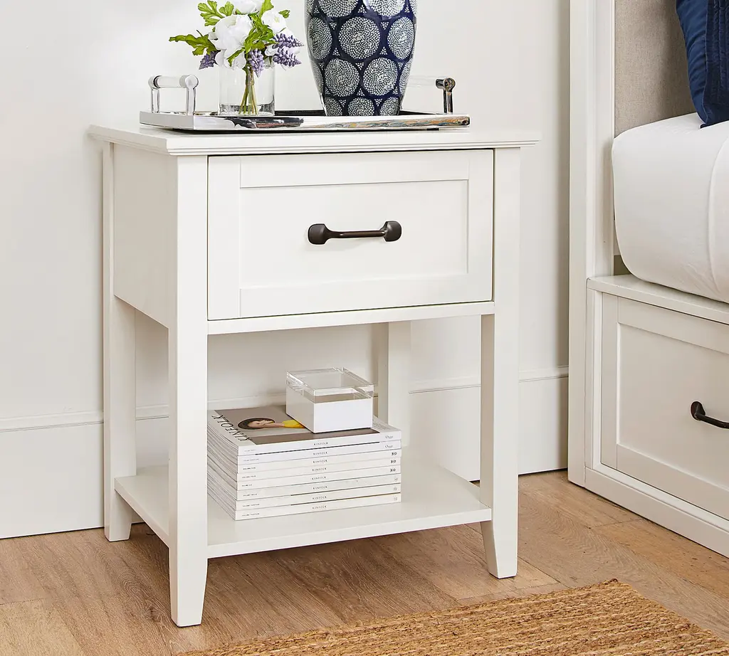 Our beautifully compact Stratton Nightstand features a solid wood frame and a spacious drawer with English dovetail joinery and a bronze-finished iron drawer pull.